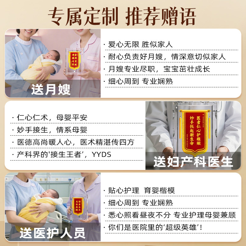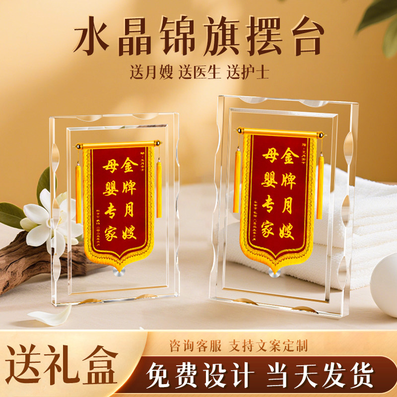 水晶锦旗定做送月嫂感谢月子中心定制送妇产科医生旌旗订做高档儿科牙医医护中心康复助产师产后护理创意摆台
