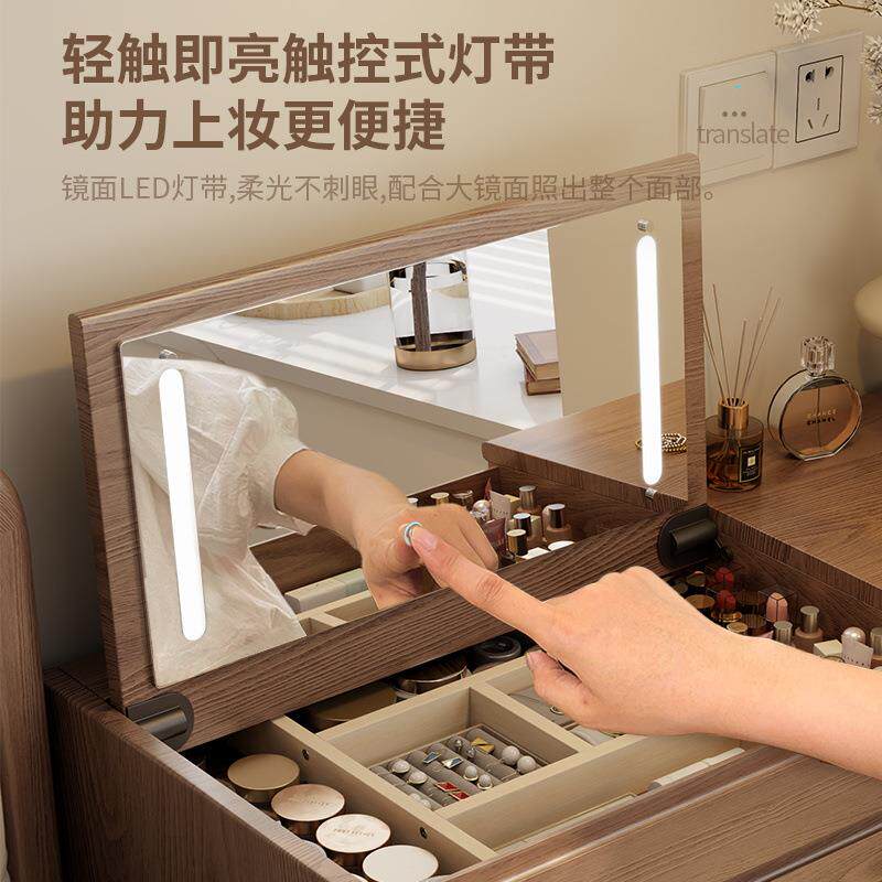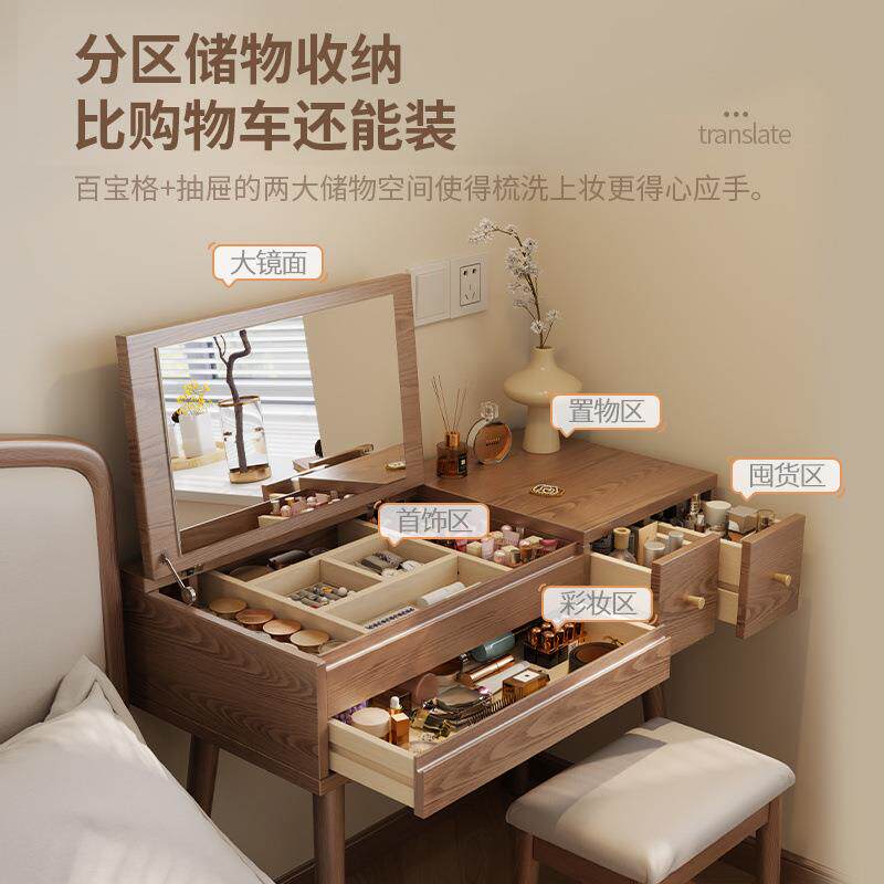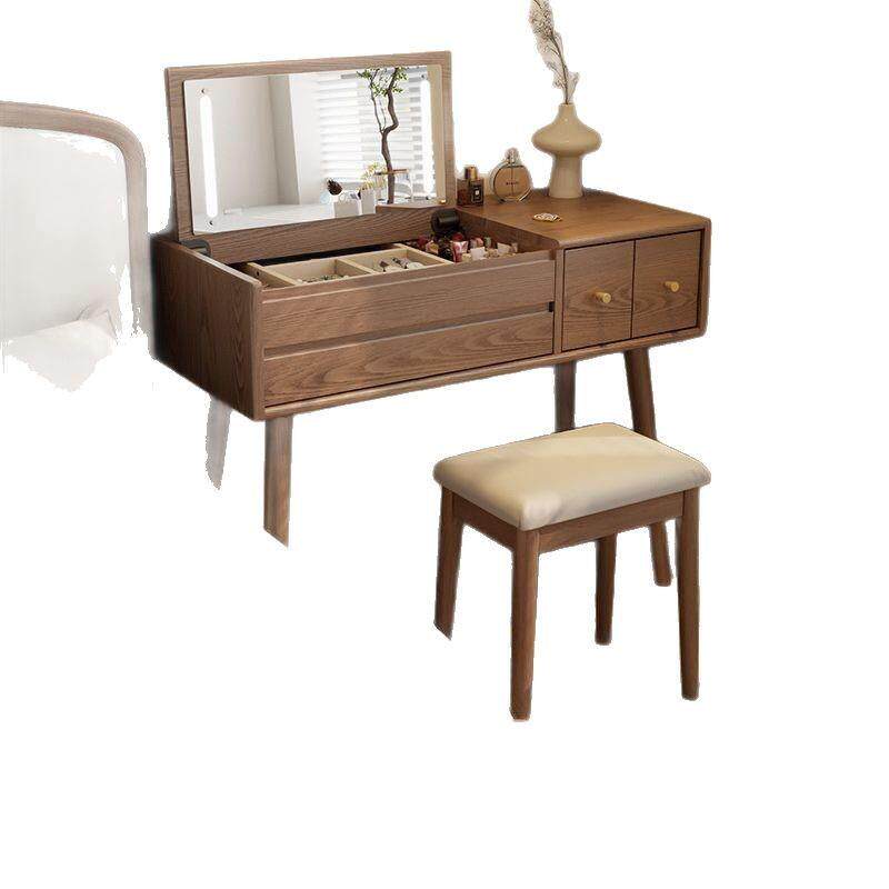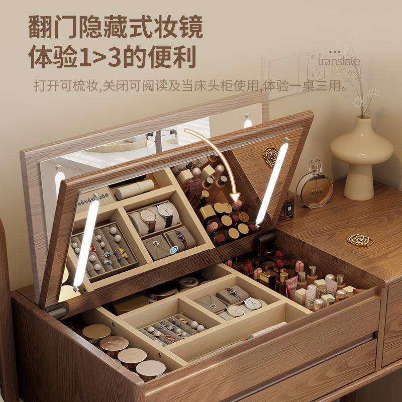翻盖梳妆台书桌一体卧室化妆镜化妆台收纳柜二合一实木化妆桌