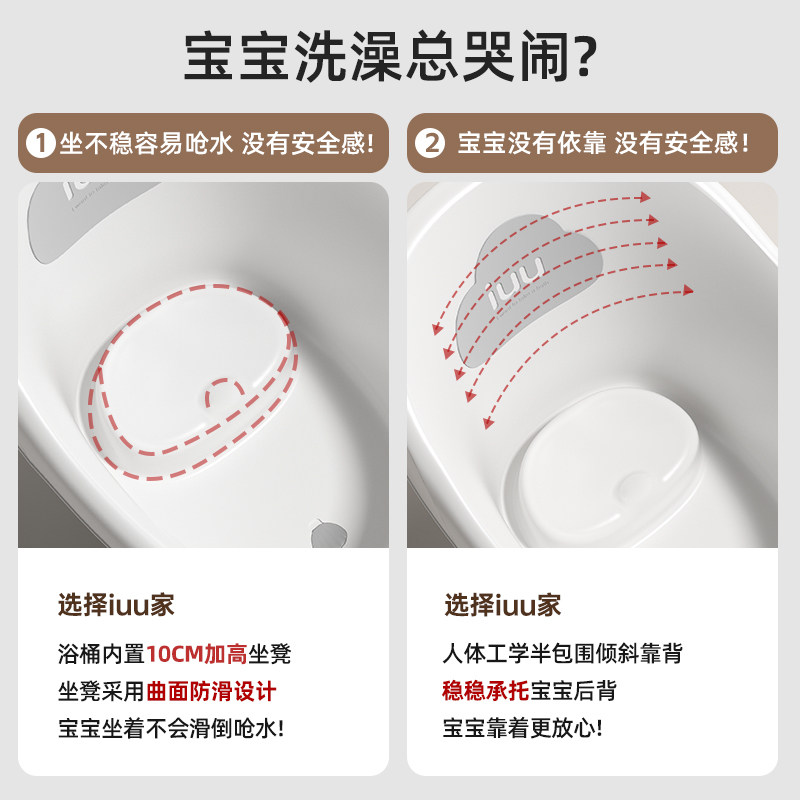 IUU儿童洗澡桶婴儿泡澡桶可坐宝宝沐浴桶家用小孩大号洗澡盆加高