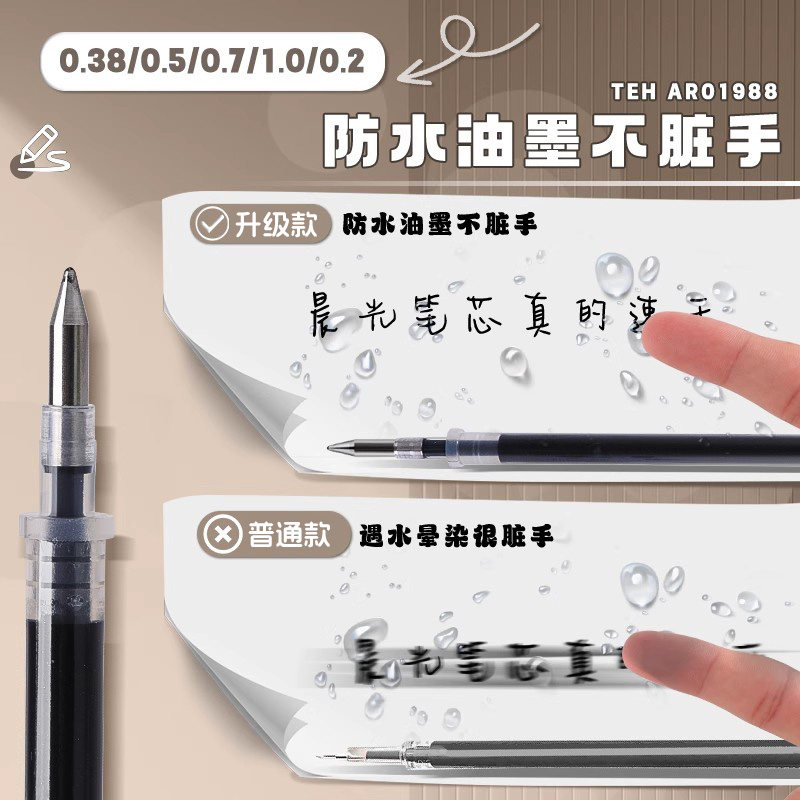 晨光笔芯中性笔笔芯0.38mm0.5学生用考试碳素黑笔芯0.7全针管子弹头黑色蓝色红色墨蓝优品替芯签字笔用水笔芯