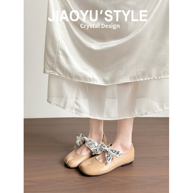 真皮~骄屿蝴蝶结分趾芭蕾玛丽珍鞋女2026春新款浅口通勤猪蹄单鞋