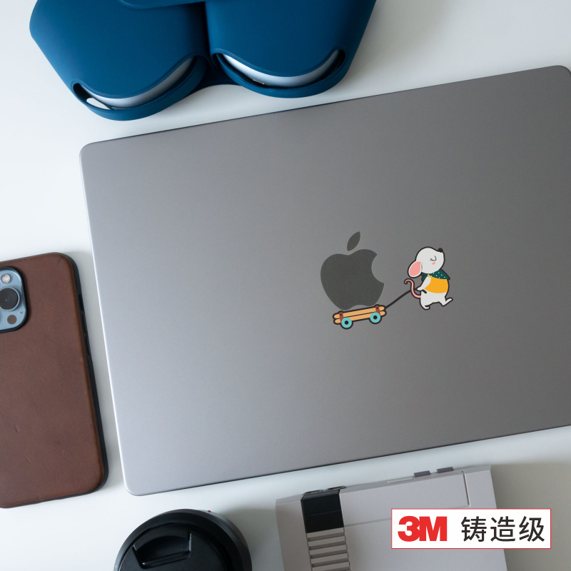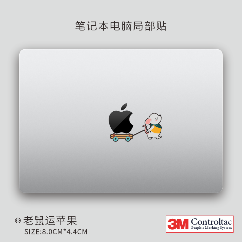 艺贴进口铸造级带导气槽易定位技术 运苹果的老鼠 适用苹果笔记本电脑macbook外壳局部创意贴纸划痕遮瑕无痕