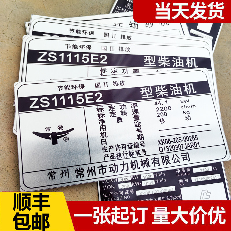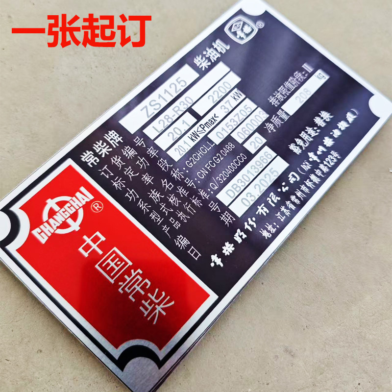 定做柴油机铭牌标识牌金属不锈钢标牌常柴玉柴船用发动机铭牌定制