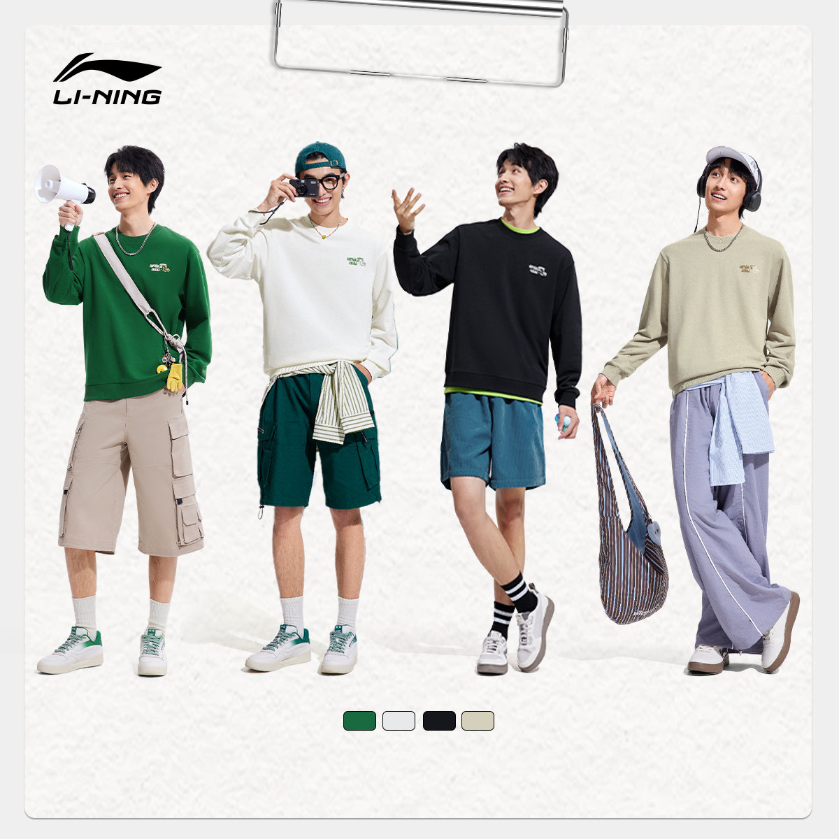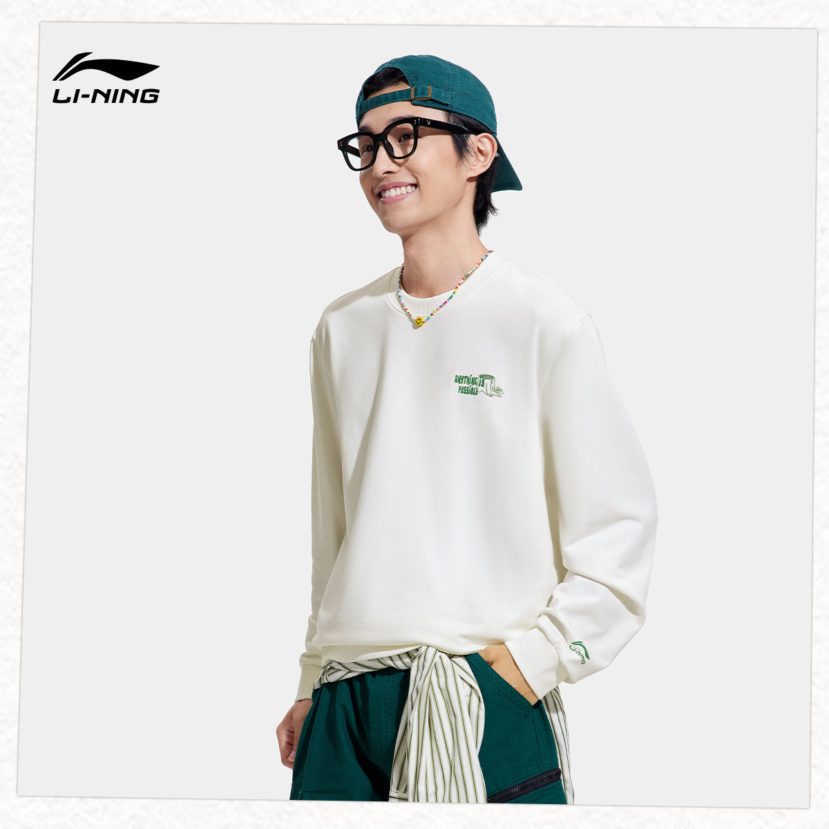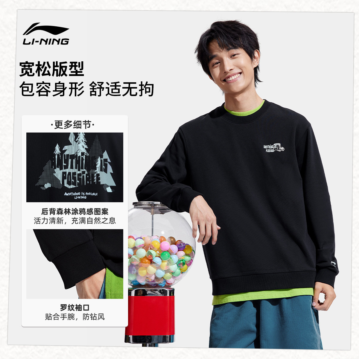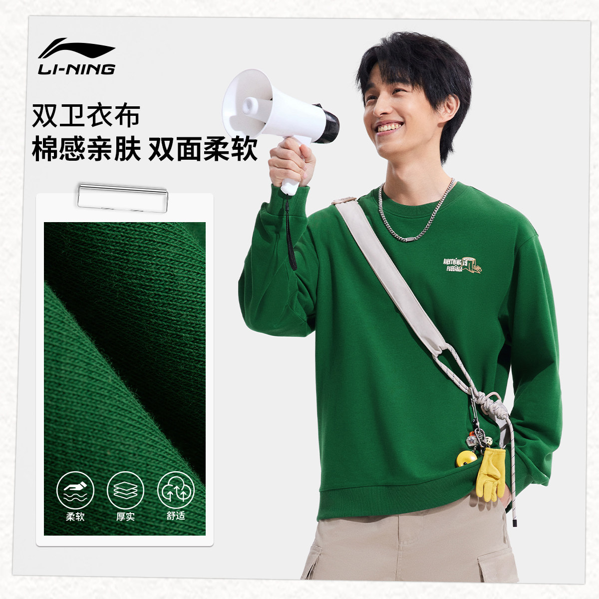 李宁卫衣男女春季新款情侣套头衫长袖圆领上衣毛圈运动服卫衣女士