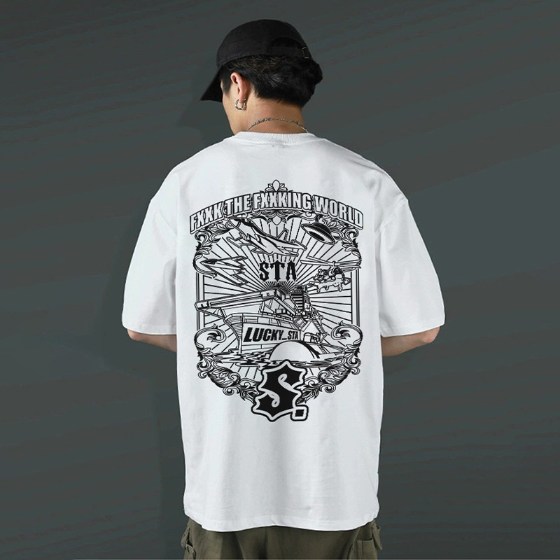 STA2023夏季新款宇宙航海休闲短袖T恤潮牌男士圆领上衣重磅美式