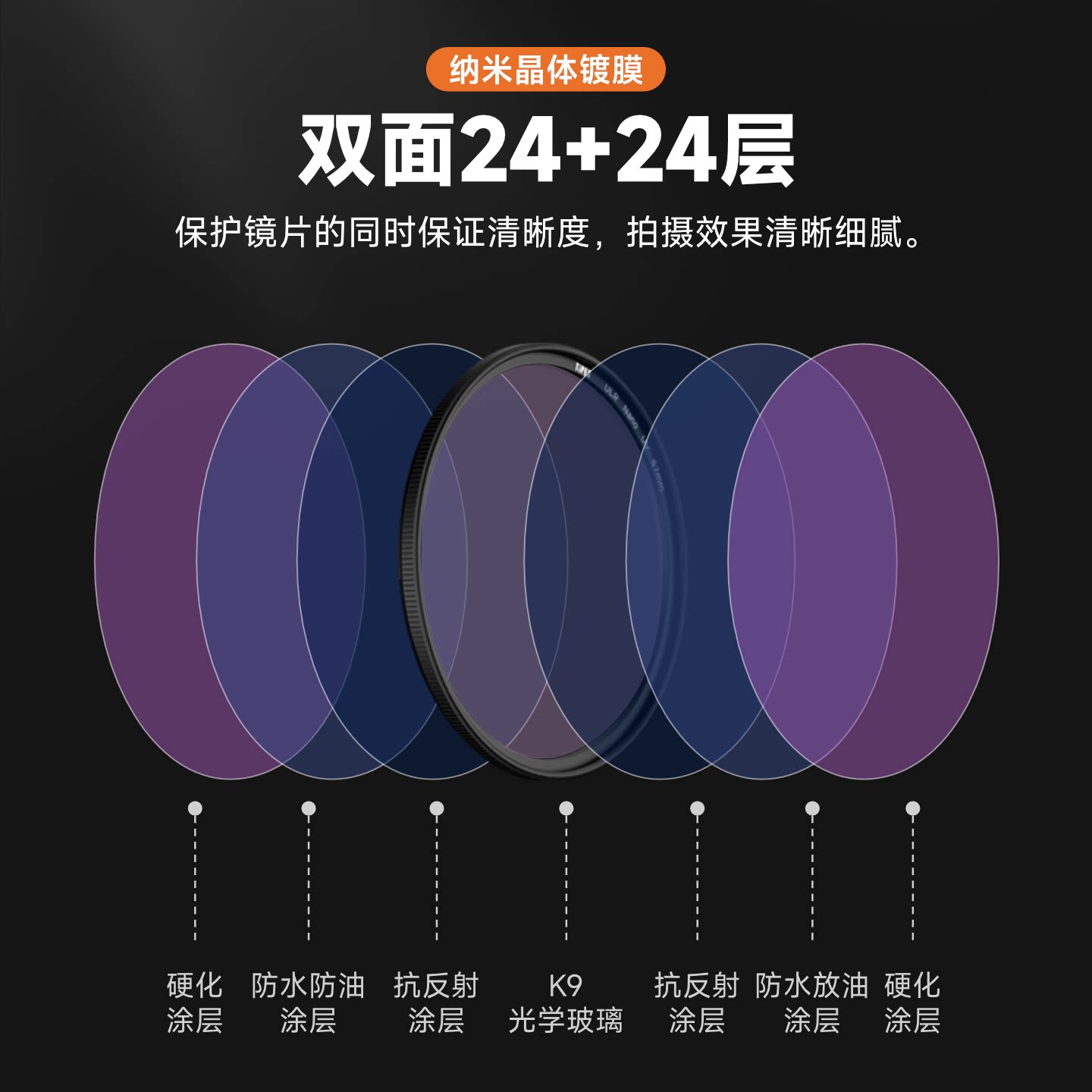 铜框UV镜99.8%透光率 MRC超清24层镀膜 58 67 72 77 82 95 105mm 低反射防眩光适用于佳能尼康索尼单反滤镜