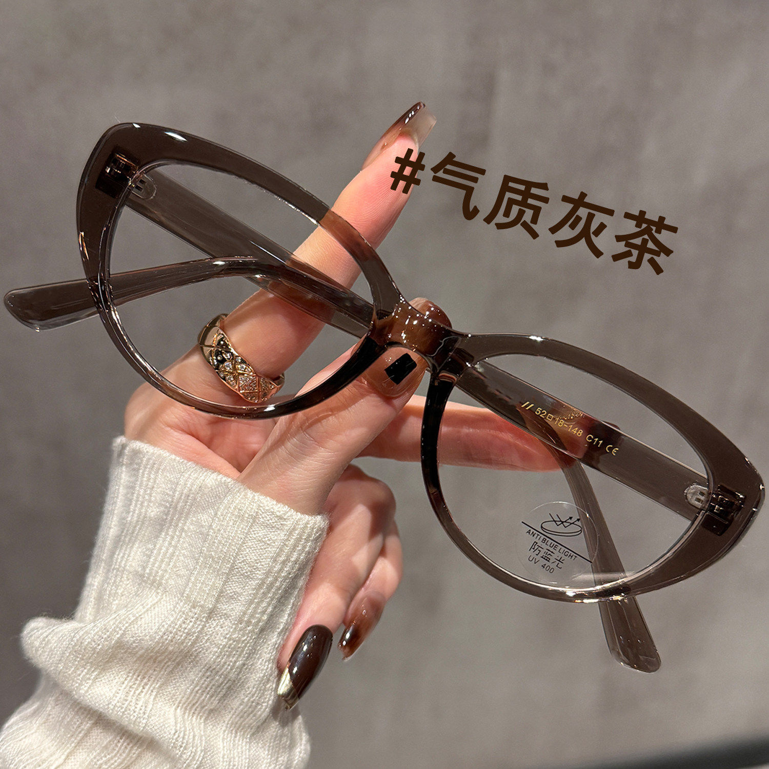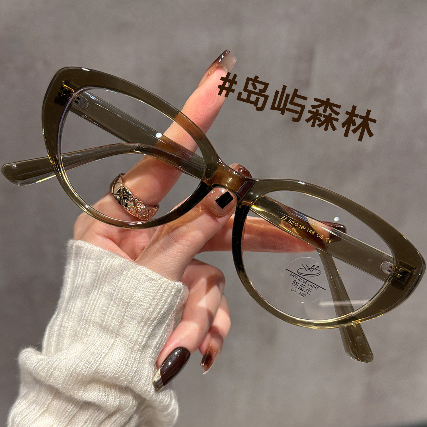 网红猫眼氛围感眼镜近视女可配度数超轻TR素颜神器显脸小眼睛框架