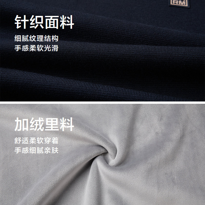 红蜻蜓男士圆领毛衣加绒加厚秋冬新款休闲保暖爸爸冬装针织打底衫