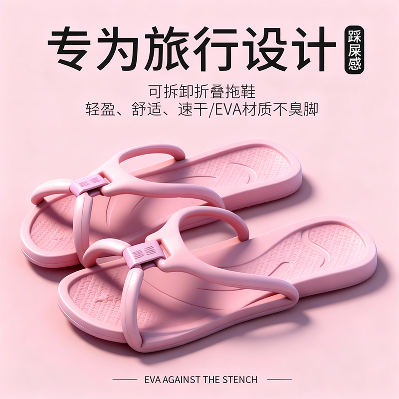 可折叠旅行一次性拖鞋女便携式夏季旅游防滑沙滩出差酒店洗澡凉拖