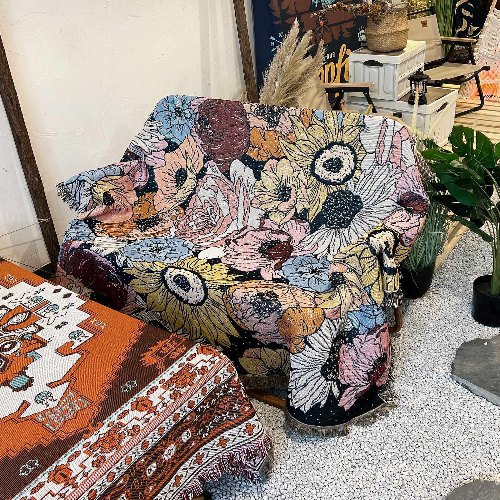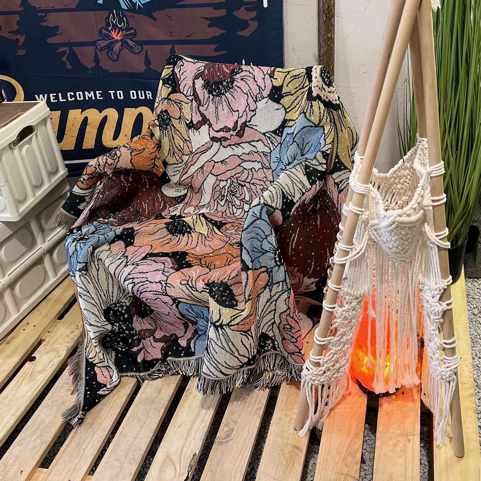 ins风多功能露营毯子沙发毯盖毯午睡毯波西米亚毯线毯户外野餐毯