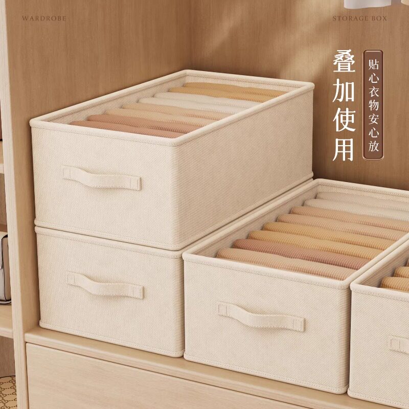 拍1发4衣服收纳筐神器布艺装衣物衣柜分层收纳箱家用框裤子整理盒