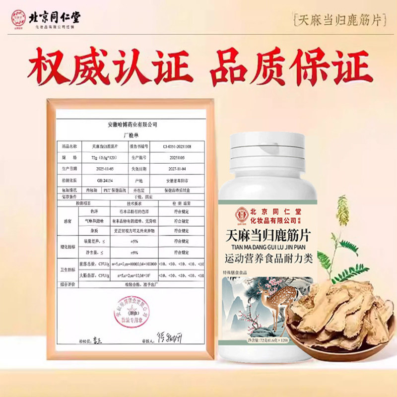 北京同仁堂御医匠天麻当归鹿筋片官方旗舰店正品关节腿全新升级款