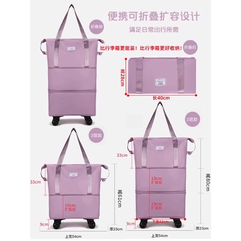 米熙可扩容旅行包女大容量短途旅游登机行李袋手提斜挎收纳行李包