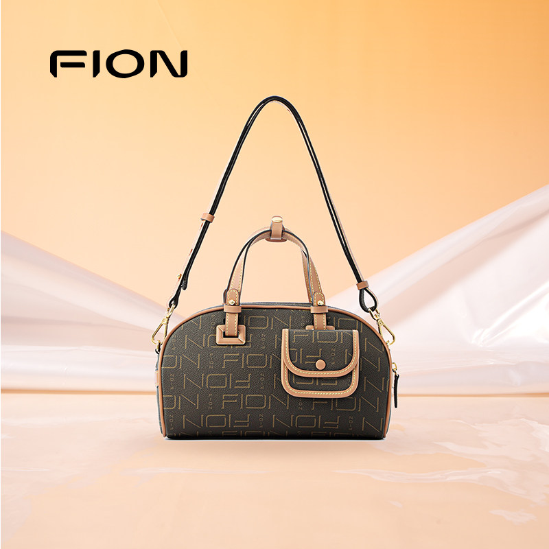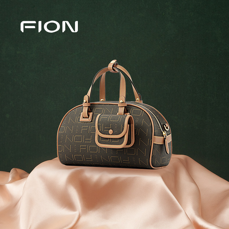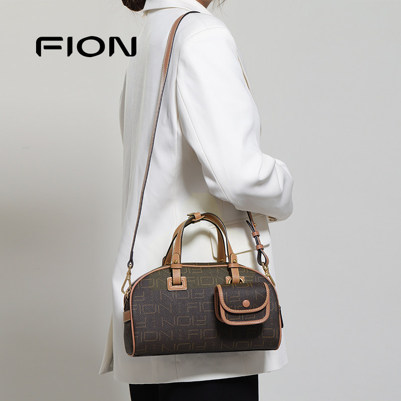 Fion/菲安妮女包波士顿包新款老花复古单肩斜挎包手提保龄球包包