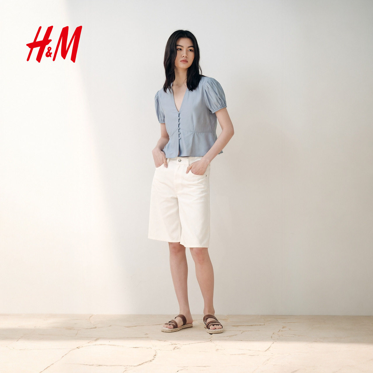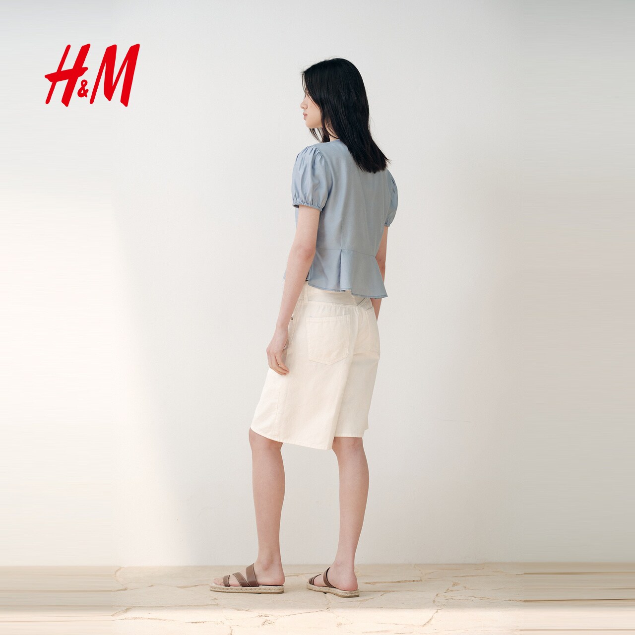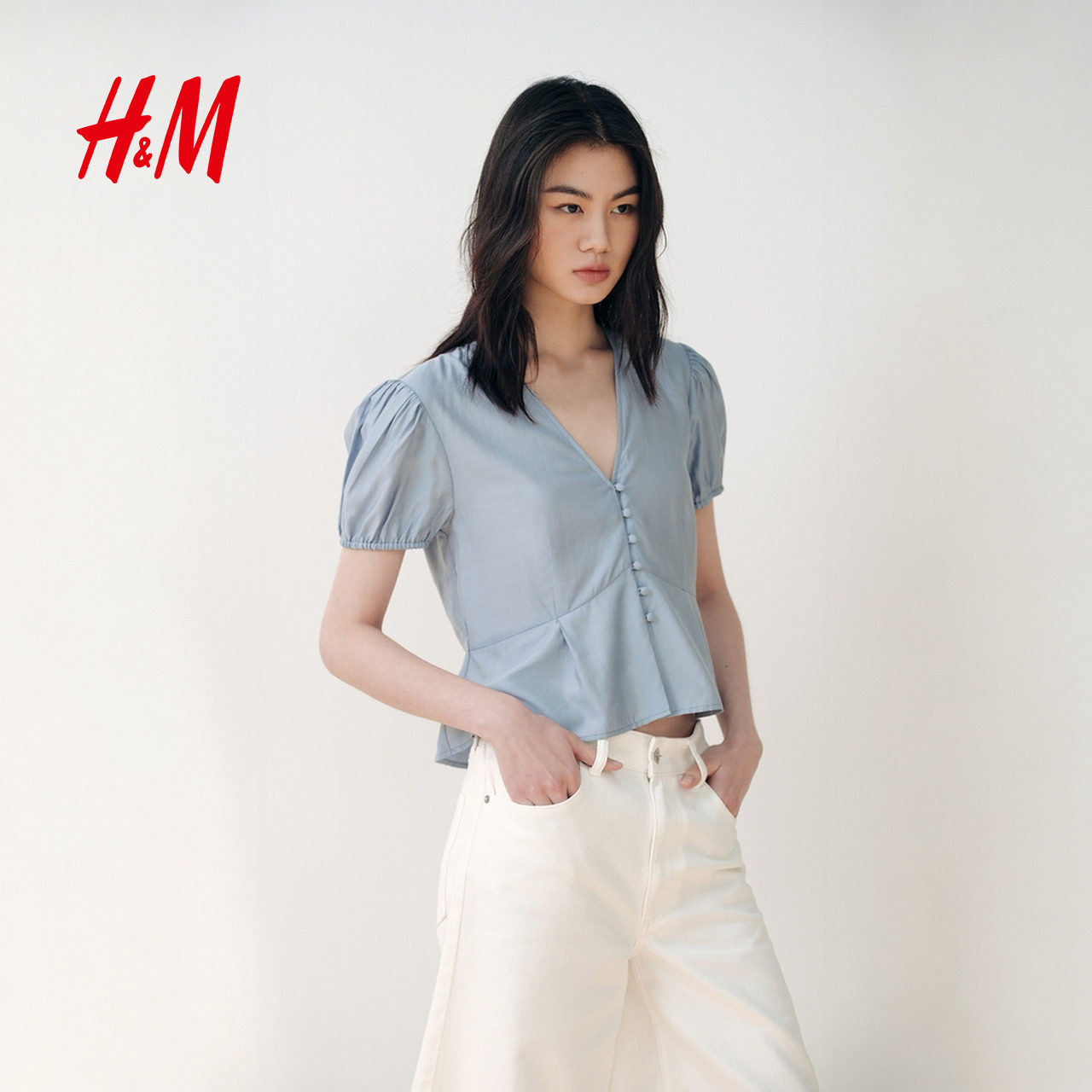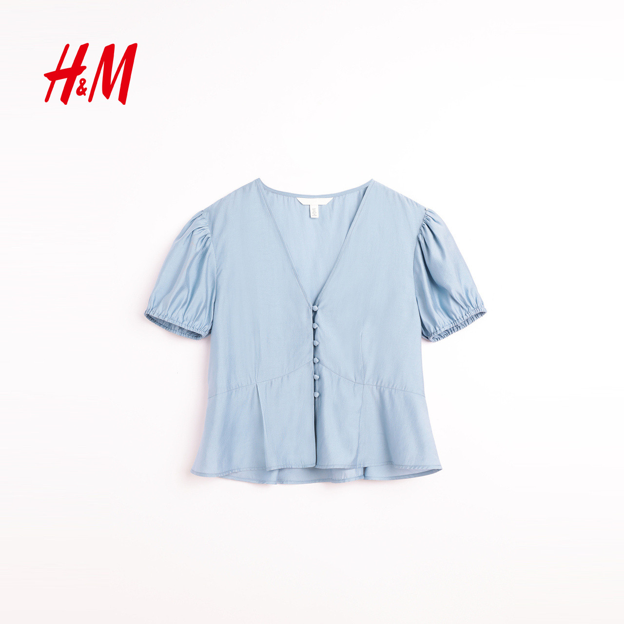 HM女装衬衫春季通勤宽松法式短袖泡泡袖衬衣上衣1000001