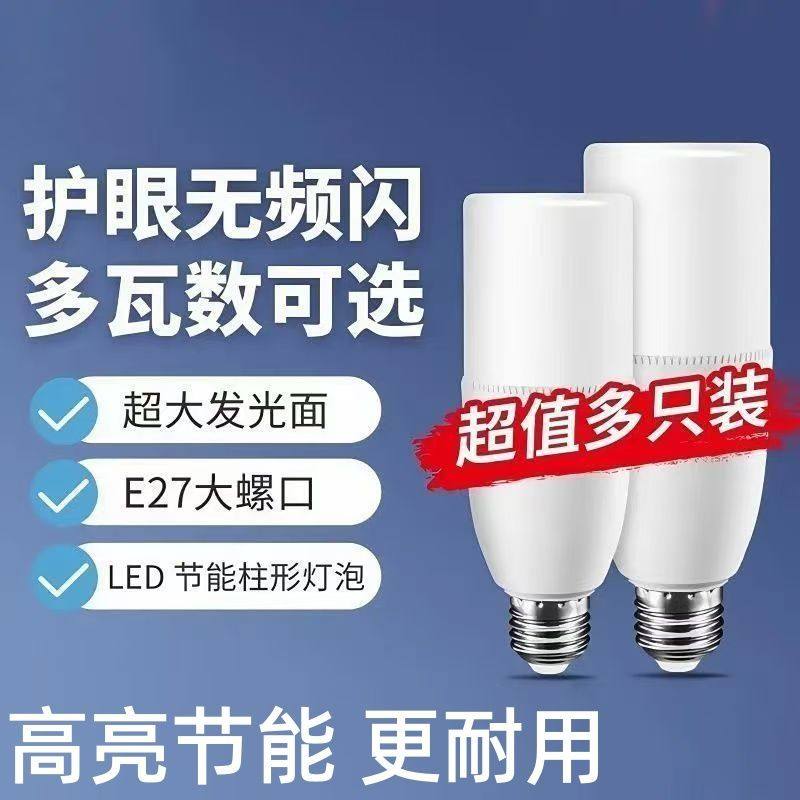 led灯泡超亮节能灯白光家用省电E27大螺口客厅室内灯照明圆柱形灯