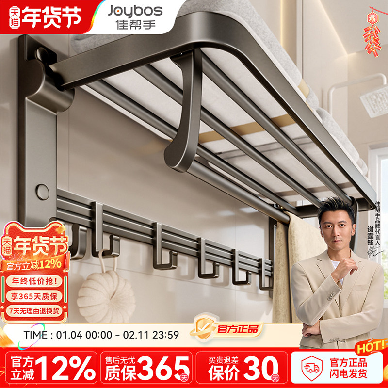 佳帮手毛巾架免打孔卫生间浴巾置物架一体浴室厕所太空铝五金挂件