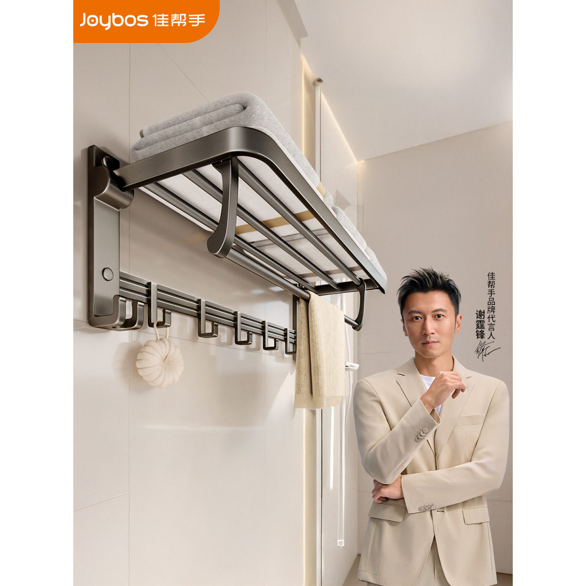 【谢霆锋推荐】佳帮手毛巾架免打孔浴室卫生间置物架一体折叠套装