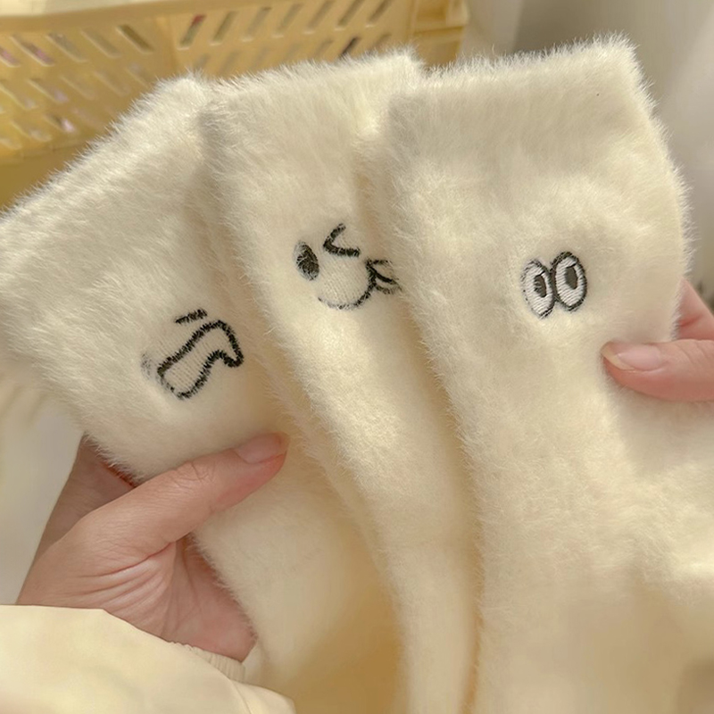 水貂绒袜子女款秋冬季加绒加厚保暖中筒袜居家毛绒绒月子睡眠长袜