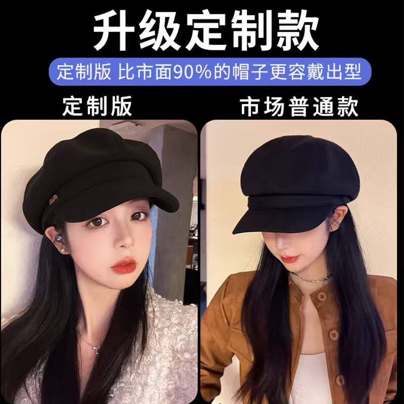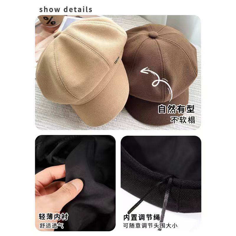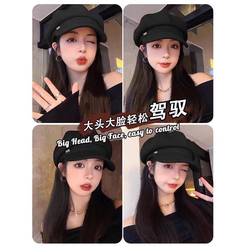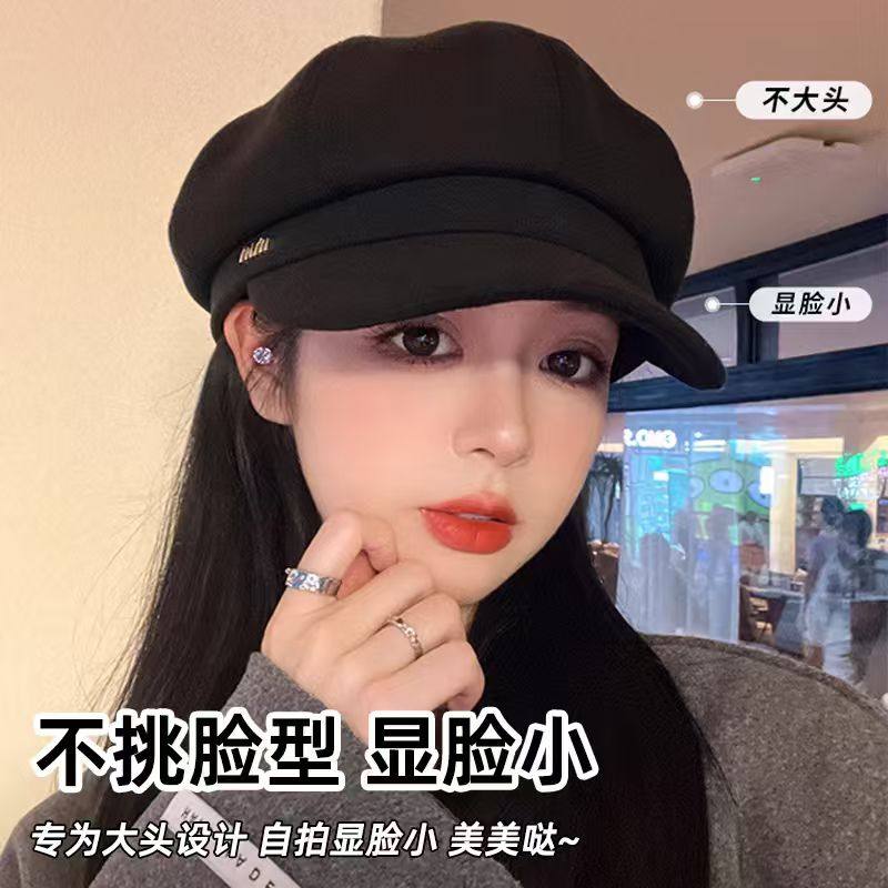 新款贝雷帽八角帽女秋冬显脸小鸭舌大头围法式复古黑色报童帽子潮