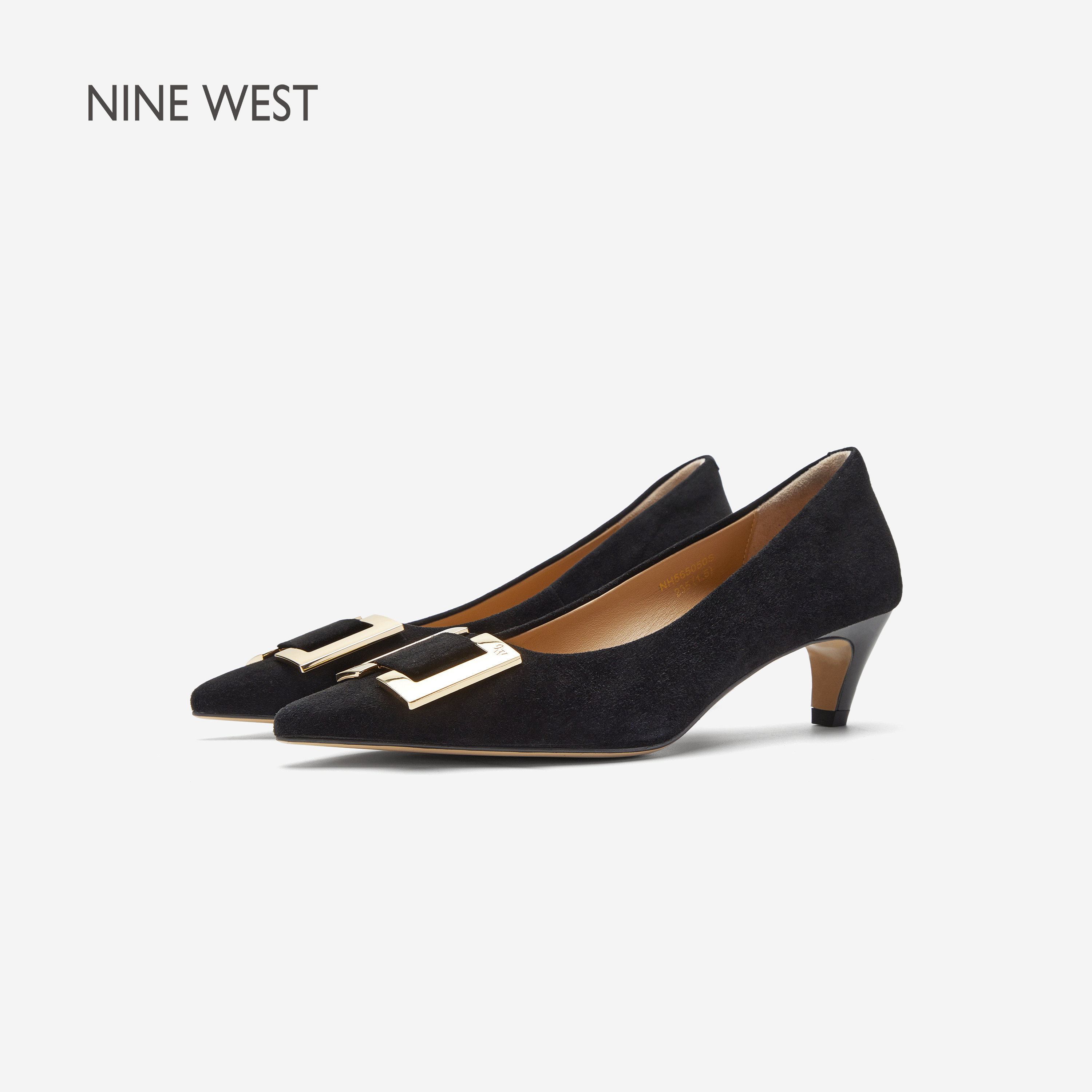 Nine West/玖熙法式尖头高跟鞋女新款绒面浅口中跟气质单鞋