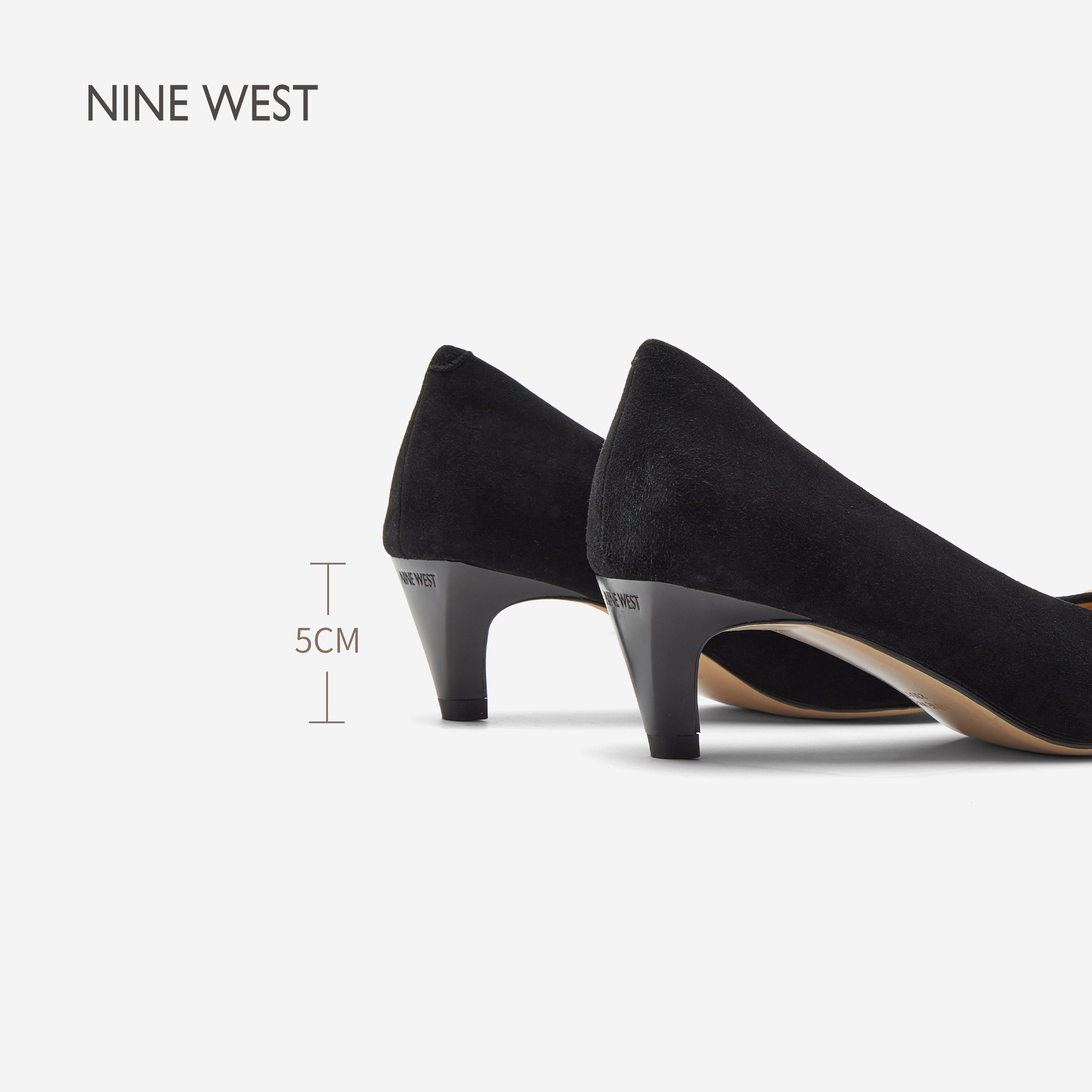Nine West/玖熙法式尖头高跟鞋女2025新款绒面浅口中跟气质单鞋