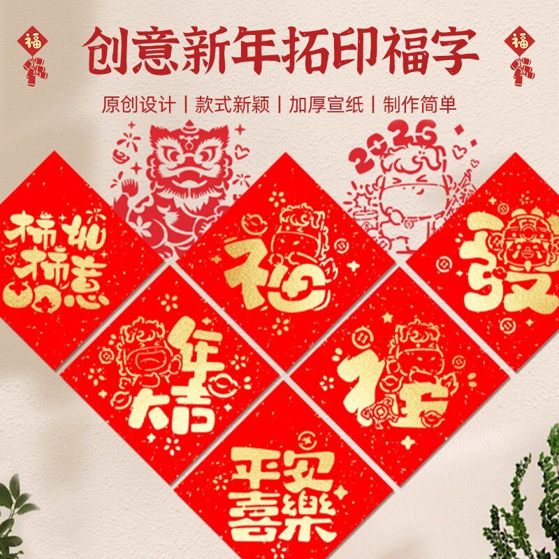 新年福字拓印年画模板工具材料包幼儿园2026马年春节diy手工儿童