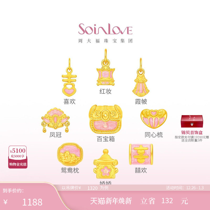周大福SOINLOVE 蜜粉金十里红妆婚嫁九宝足金黄金转运珠送礼婚嫁
