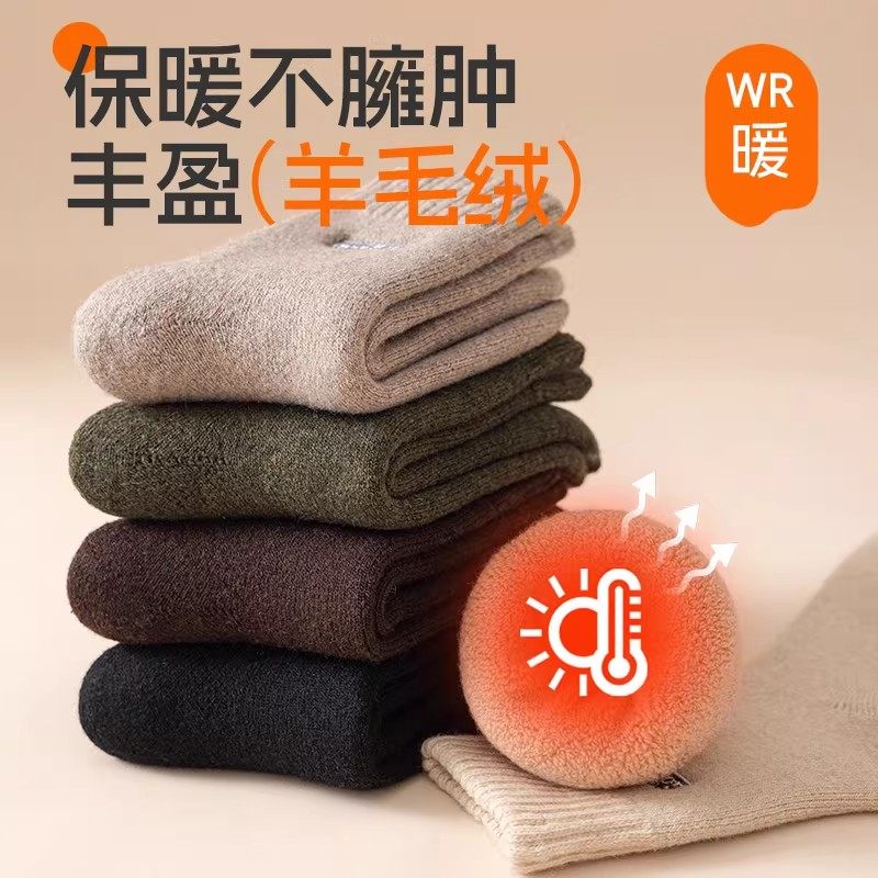 诸暨纯棉袜子男士冬季加厚羊毛毛圈袜防臭中筒袜加绒棉袜保暖长袜