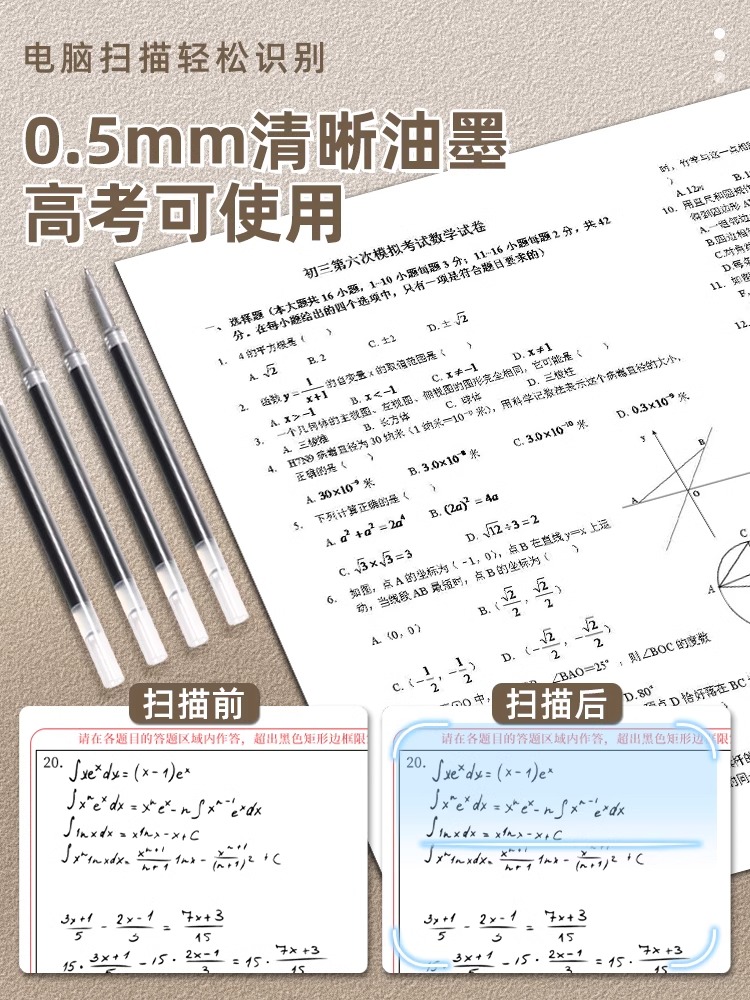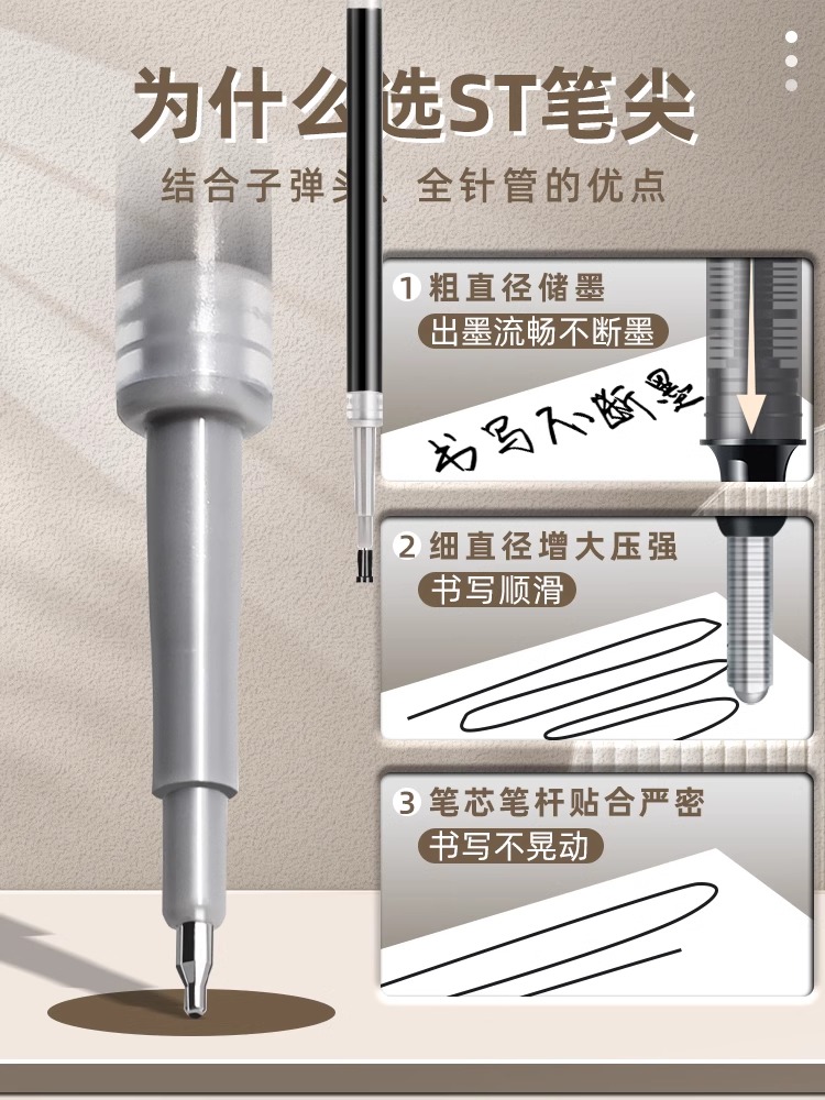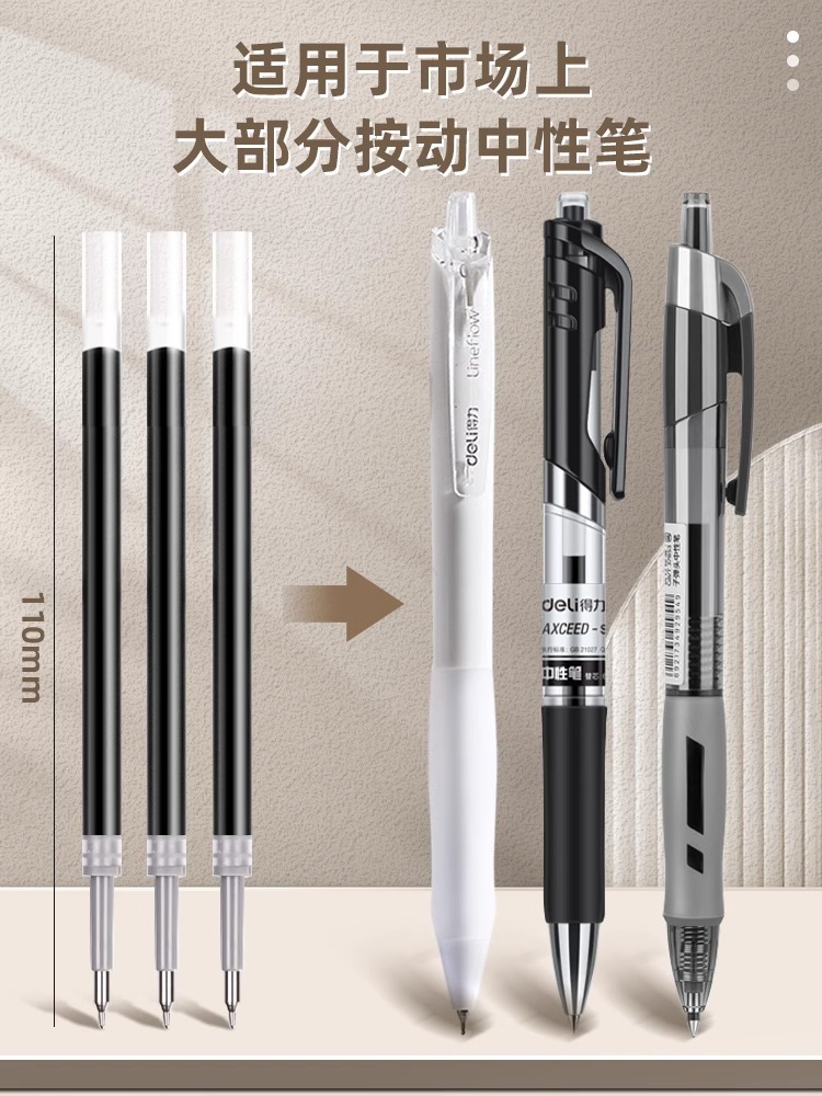 得力按动笔芯ST针管替芯尖锥CS芯子弹头芯学生考试中性笔黑色0.5