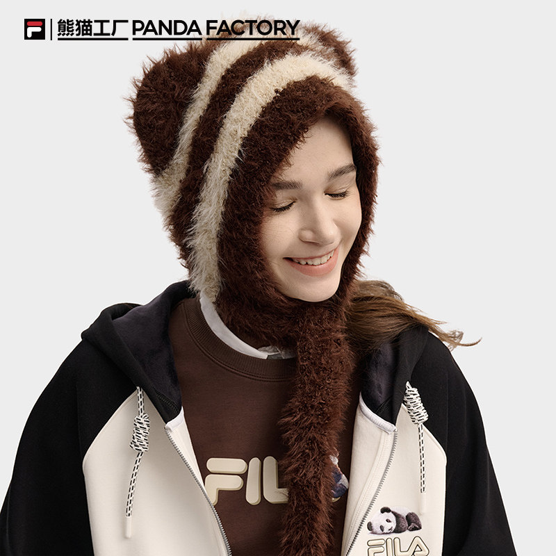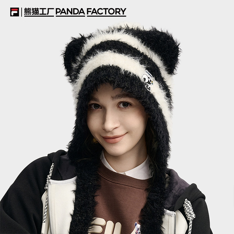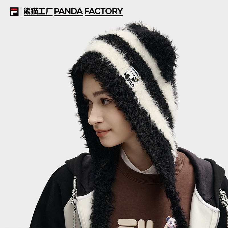 新一线萌主|FILA 斐乐官方情侣针织熊猫休闲条纹帽保暖毛线帽