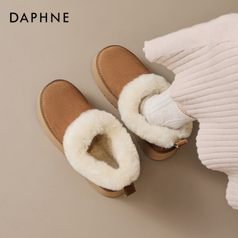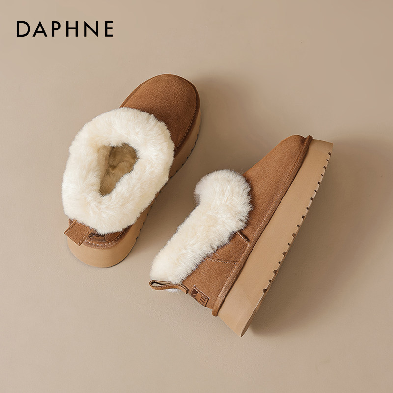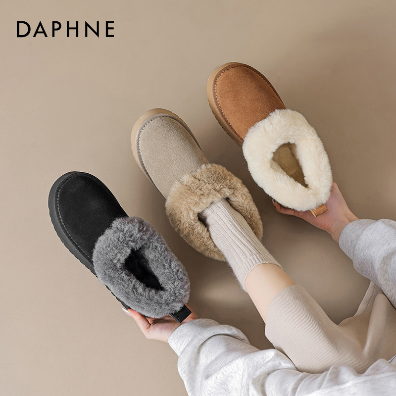 达芙妮低帮雪地靴女2025冬季新款加绒加厚毛毛鞋保暖厚底东北棉鞋