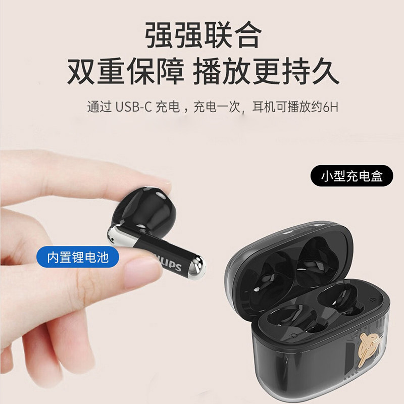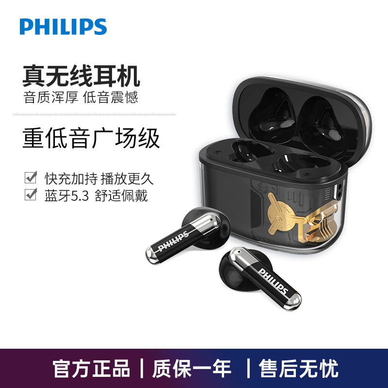 飞利浦TAT1168真无线蓝牙5.3手机通话降噪运动跑步重低音音乐耳机