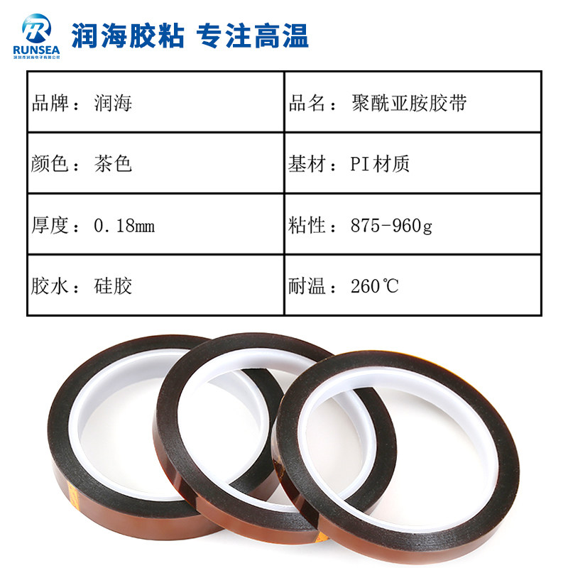 润海 0.18加厚金手指耐高温胶带PI聚酰亚胺薄膜工业防护焊隔热转印遮蔽高粘度不残胶抗高压茶色绝缘胶纸180um
