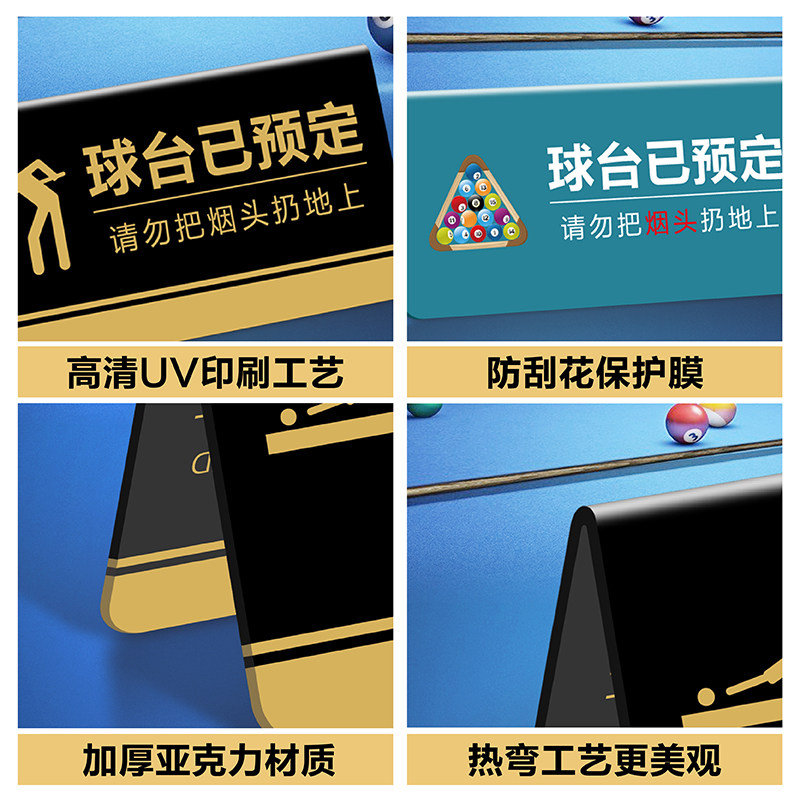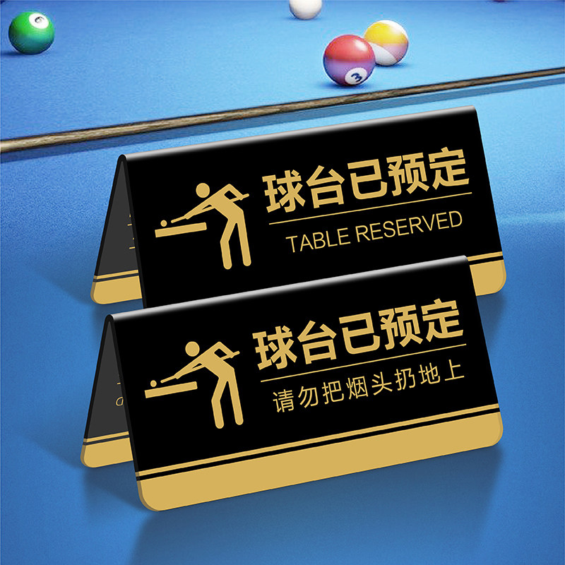 亚克力台球厅双面温馨提示立桌牌v型台牌球台已清理预约请勿黑灯打球标识台球已预订教练已预订标识牌定制