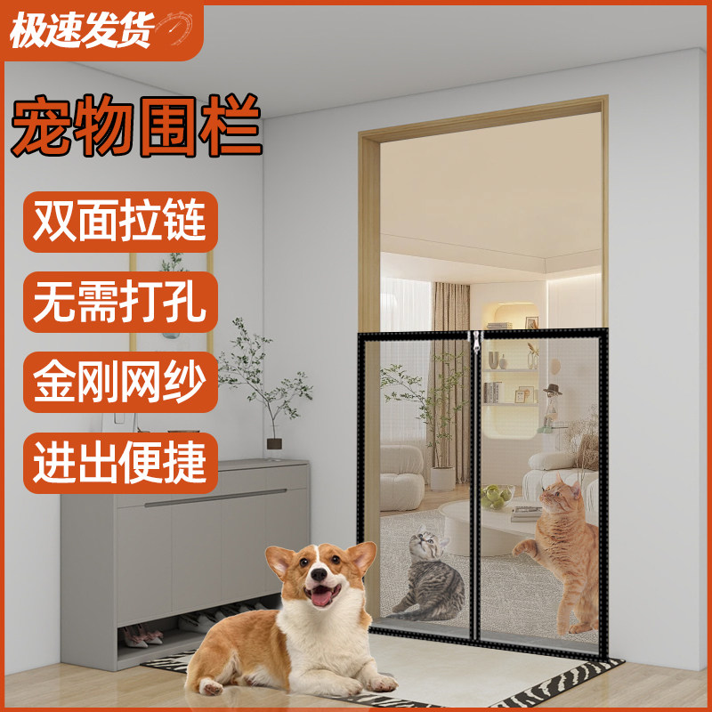 免打孔防猫门栏隔离网室内挡猫宠物阻挡门栅栏防止猫咪进门拦护网
