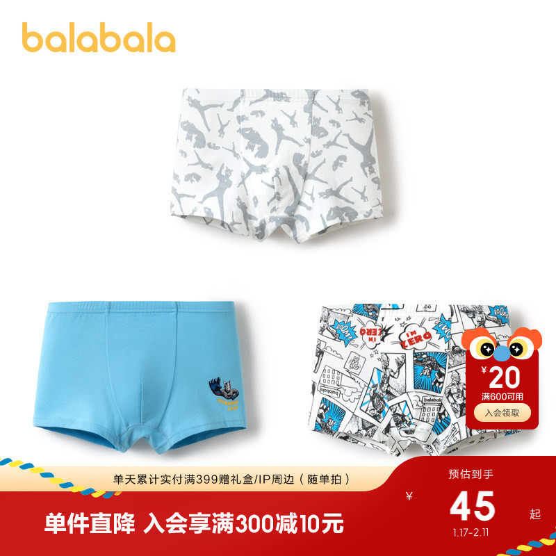 【balaOne】巴拉巴拉儿童内裤棉男童不夹pp抗菌裆四角短裤三条装