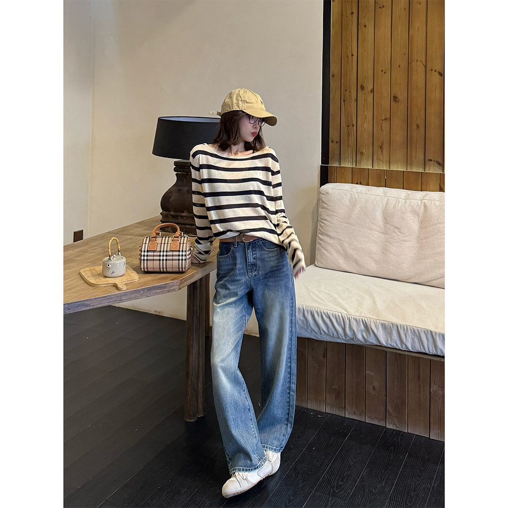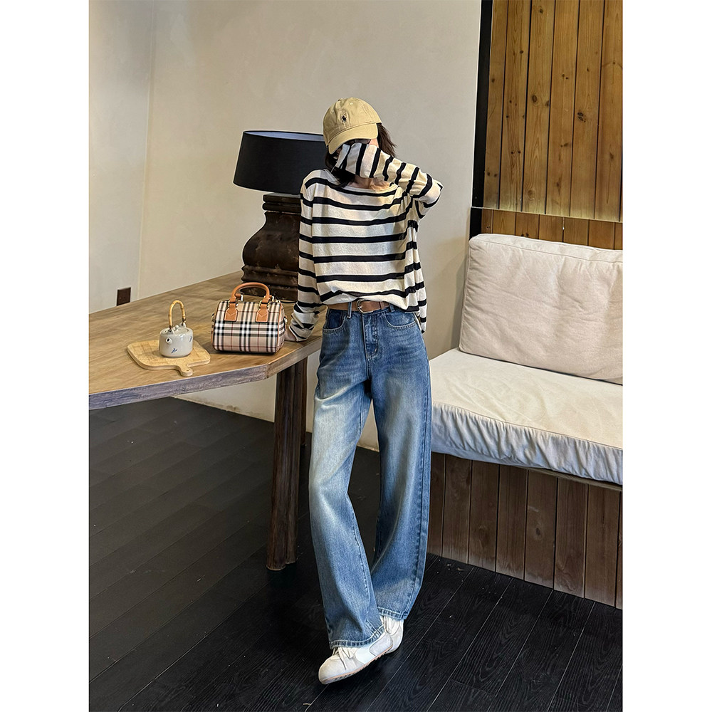 王家有鱼2025早秋新款阔腿牛仔裤直筒裤子女