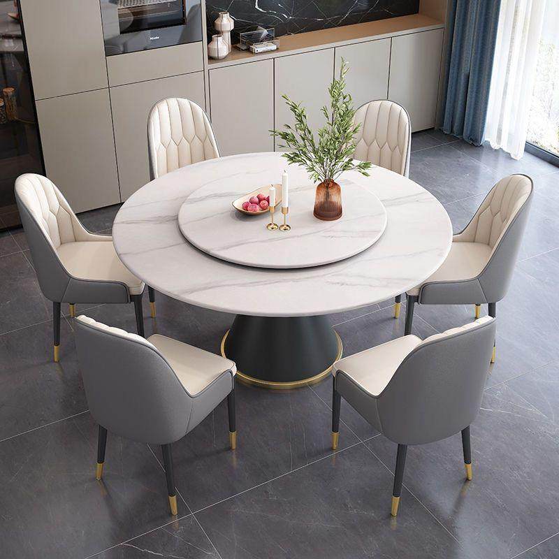 意式岩板餐桌椅组合现代简约吃饭桌子轻奢大理石家用圆形桌带转盘