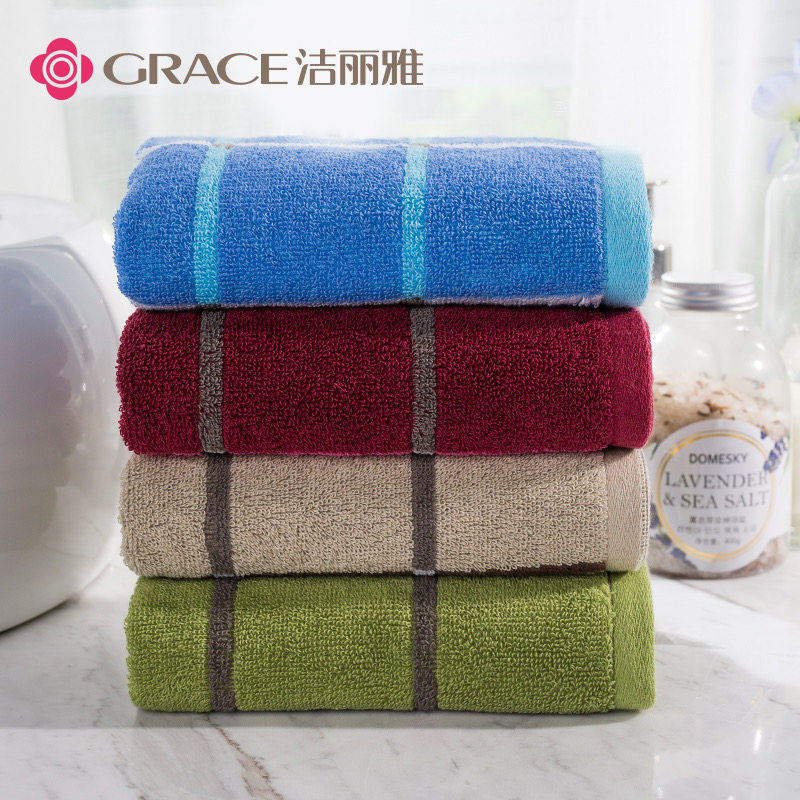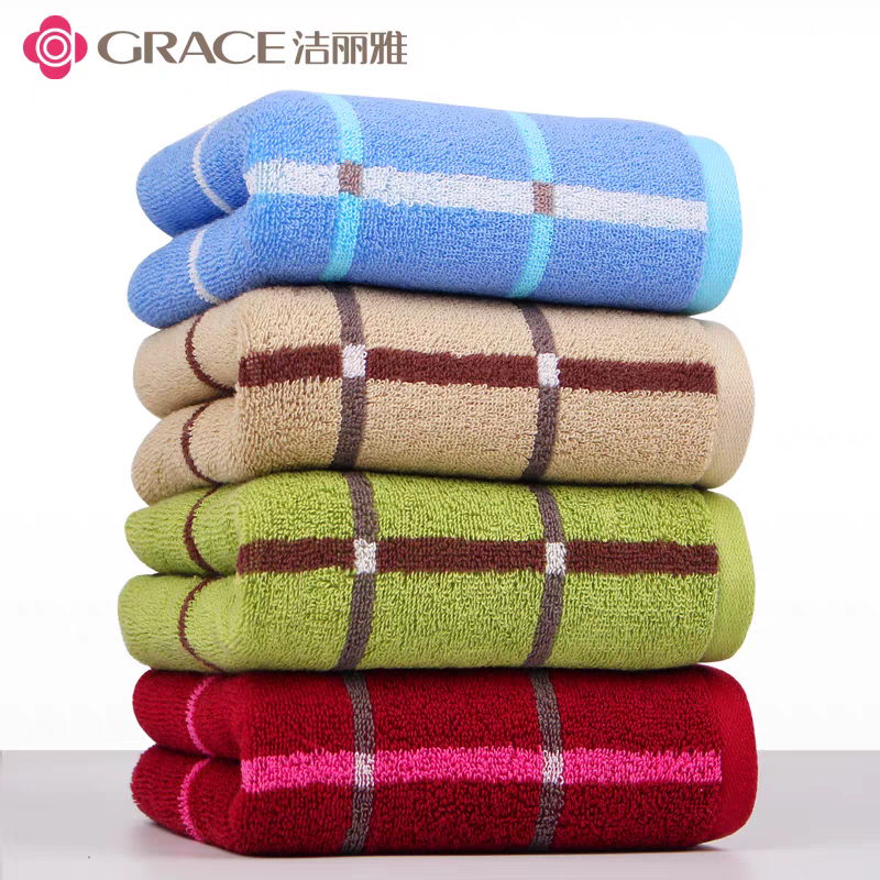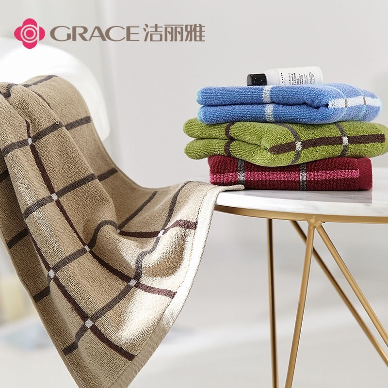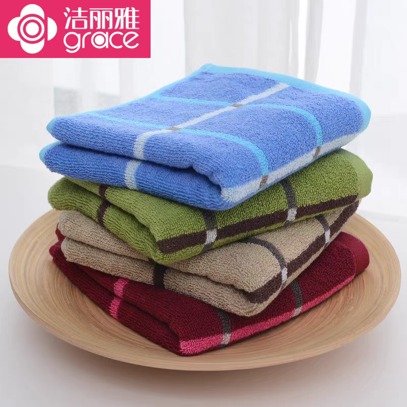 洁丽雅毛巾全棉加厚格子深色纯棉吸水柔软家用批发福利刺绣一等品