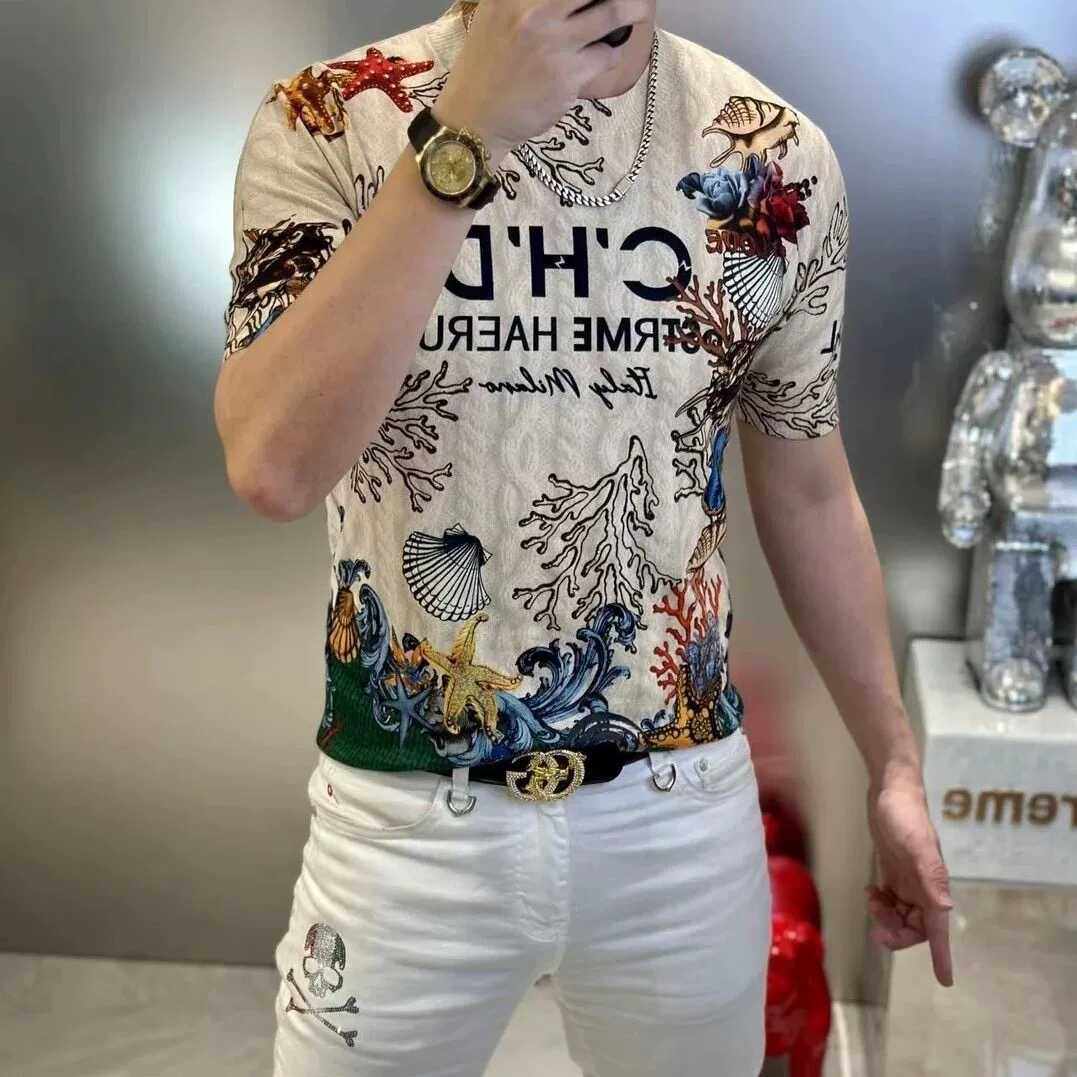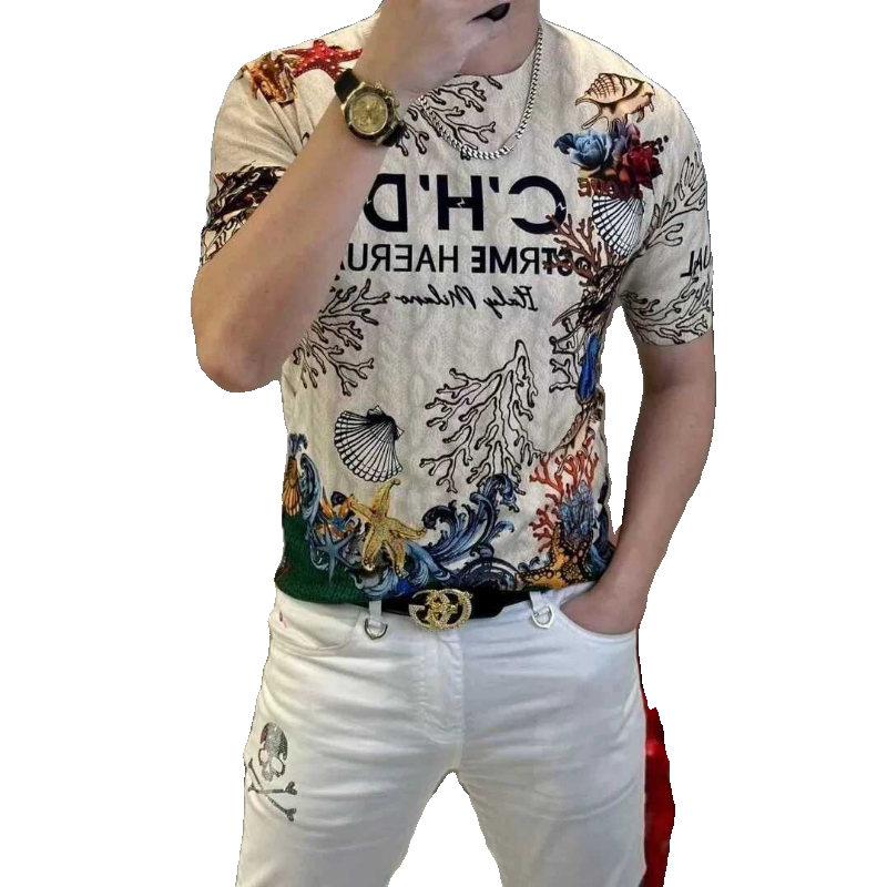 短袖t恤男士春夏季新款欧货潮牌印花休闲2025ins青年百搭冰感上衣
