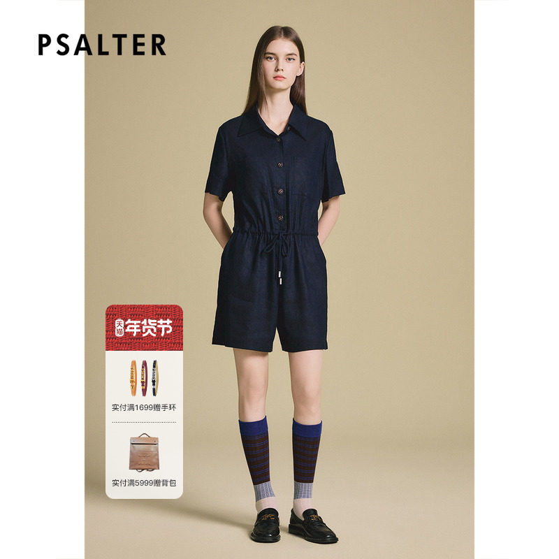 诗篇专选复古口袋翻领工装收腰亚麻连体短裤女2025夏季新款