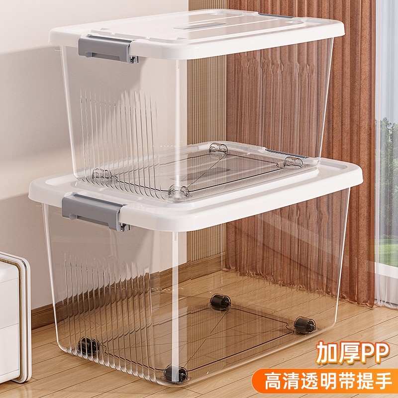 透明收纳箱超大容量带盖塑料整理箱家用衣服零食书本杂物储物箱子