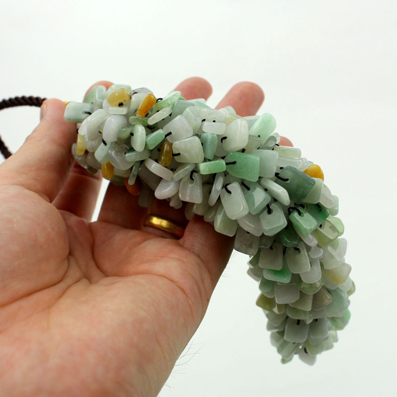 天然冰种三彩翡翠钱袋手工编织车挂 高档汽车饰品车内挂件玉挂饰