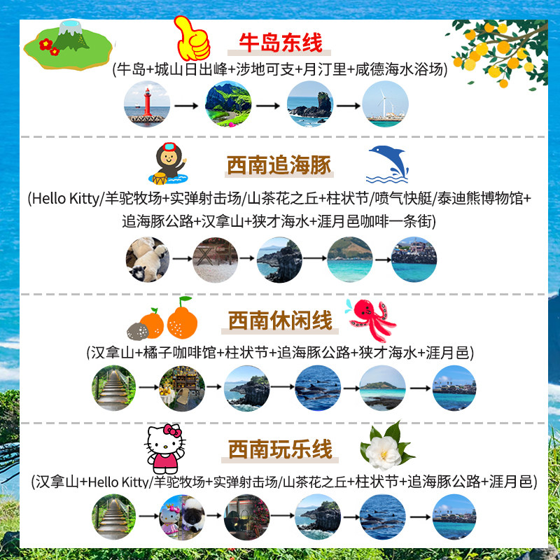 【1人起订】韩国济州岛一日游 牛岛东西南线网红中文旅游小拼包车