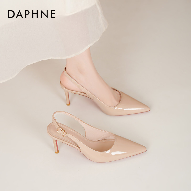 达芙妮尖头细跟高跟凉鞋女夏2026新款女鞋裸色包头凉鞋单鞋配裙子