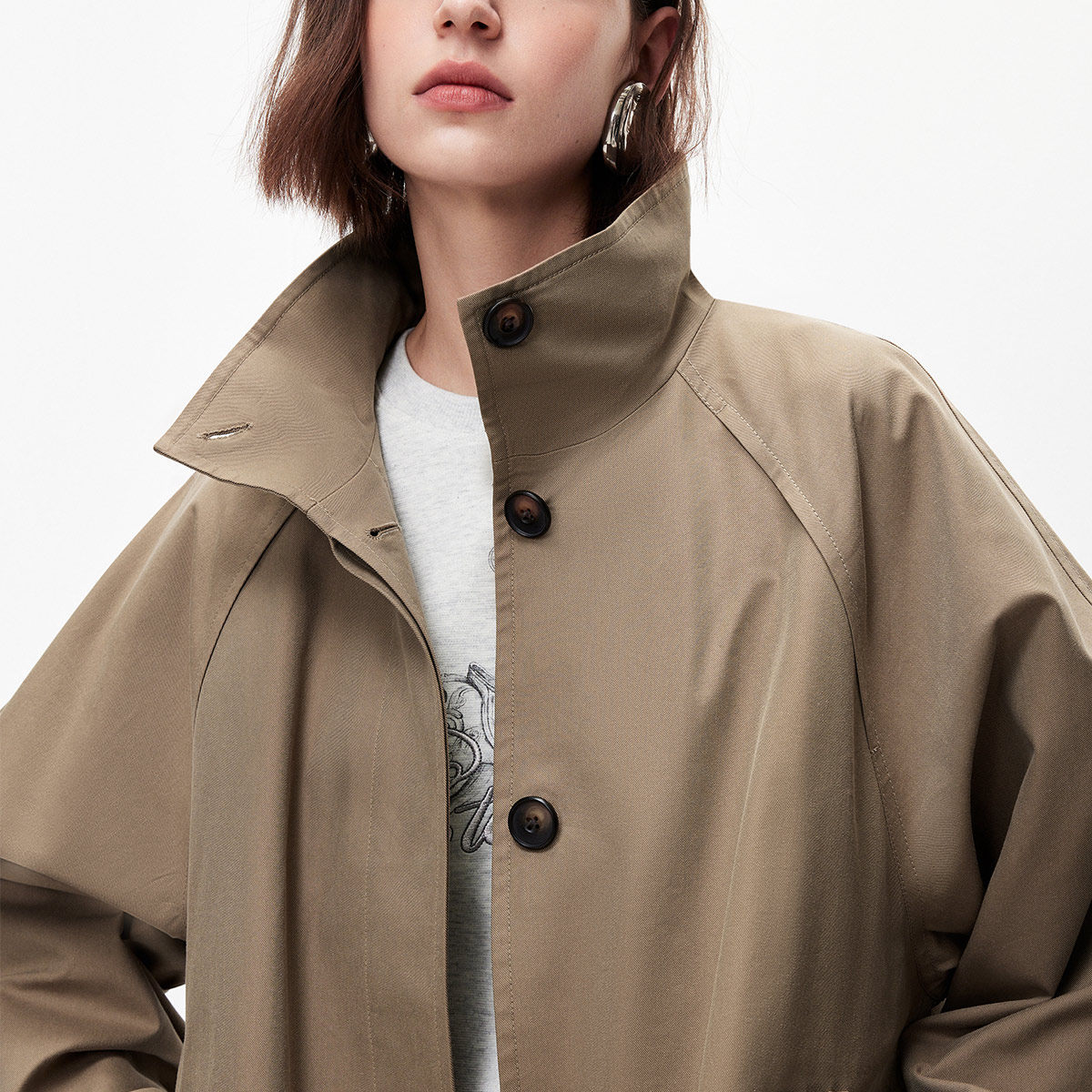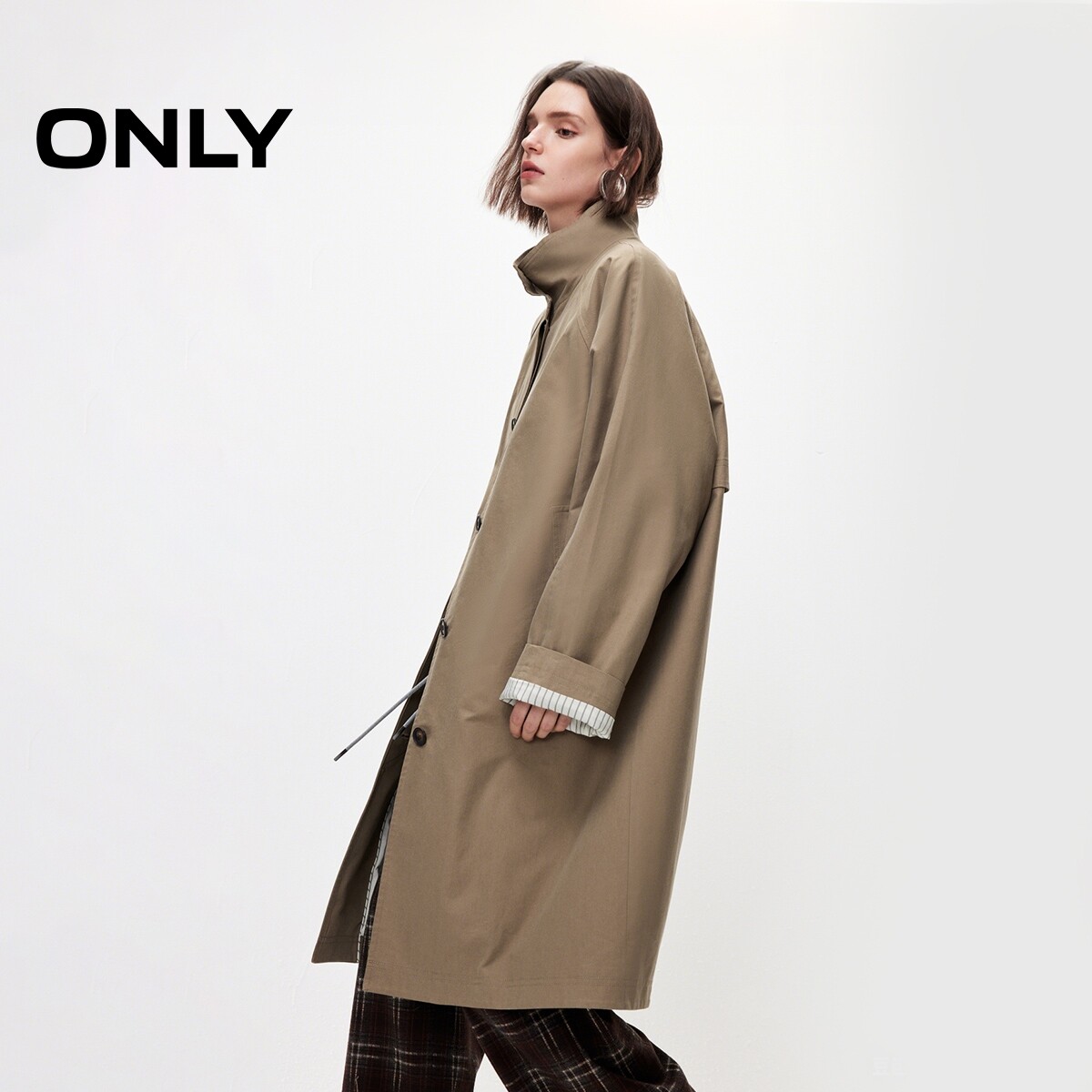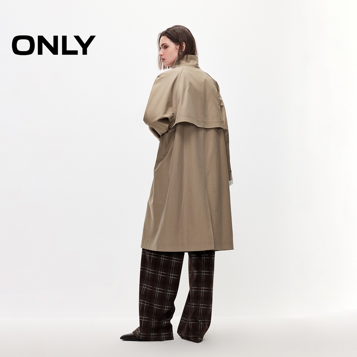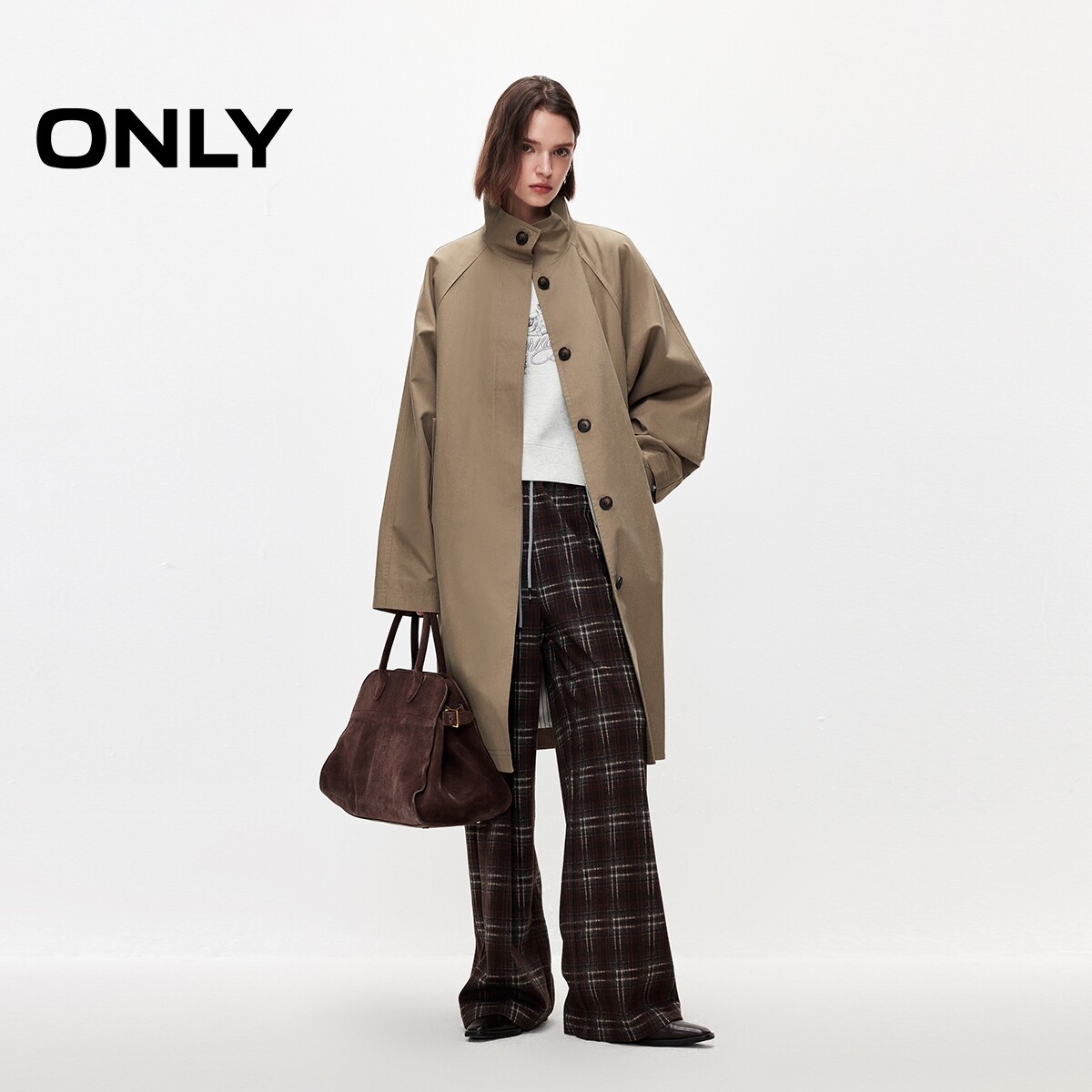 ONLY2026春季新款门襟隐藏纽扣背面开叉中长款挺括立领风衣外套女