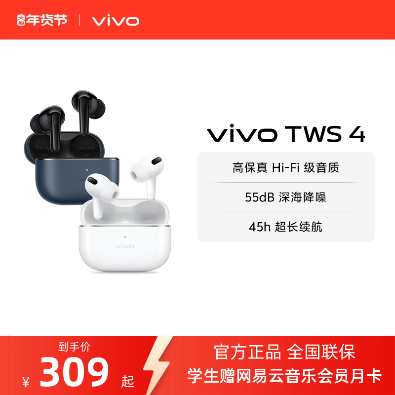 【学生好物】vivo TWS 4 耳机降噪无线蓝牙耳机
