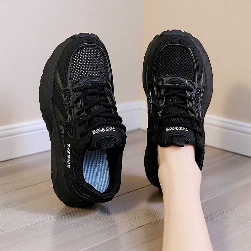 厨房工作鞋女夏透气网鞋防滑鞋黑色上班小黑鞋运动老爹鞋不累脚