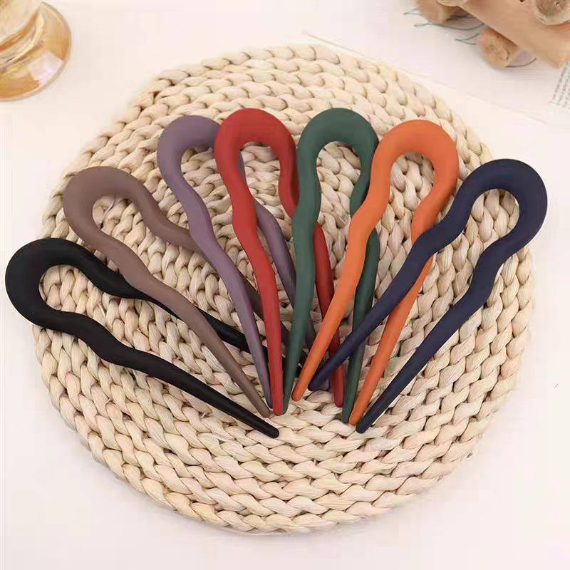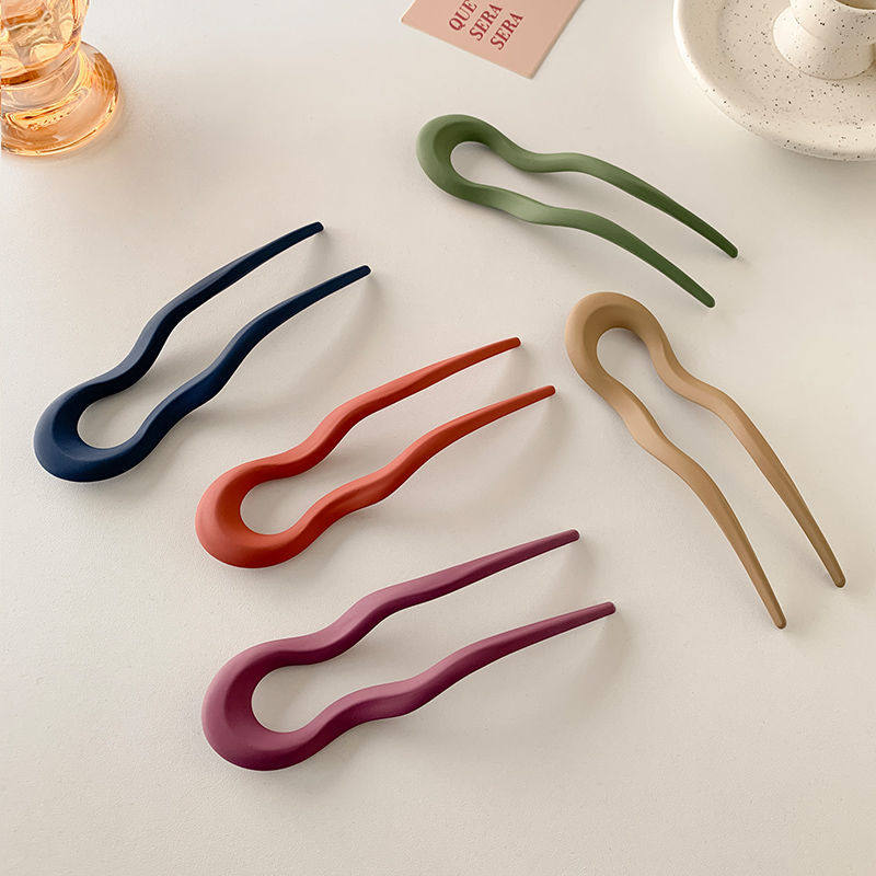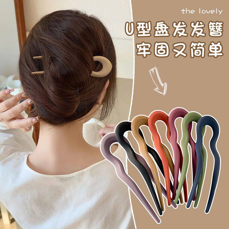 磨砂发簪u型夹簪子四齿插梳盘发神器后脑勺丸子头固定简约发钗女